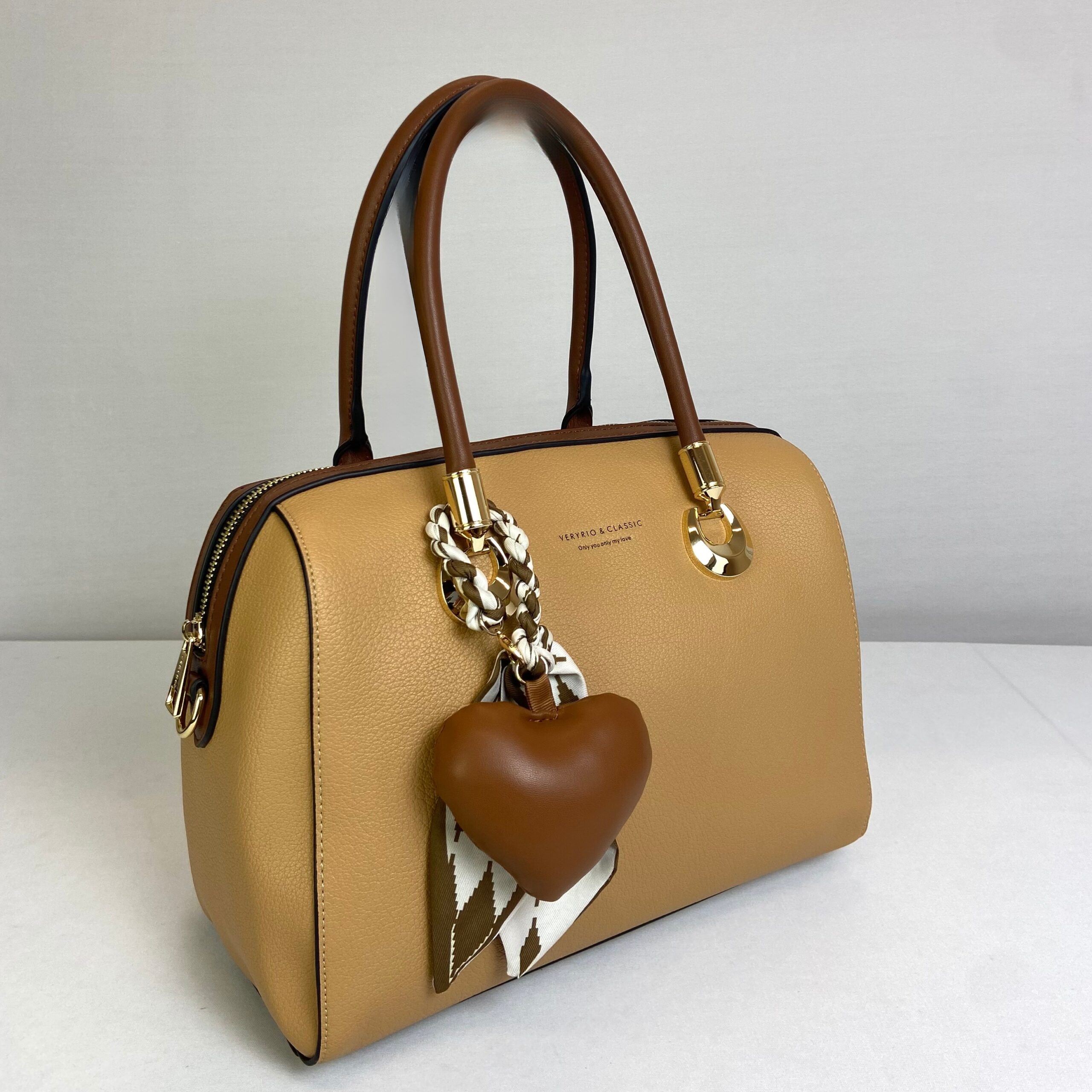 Bolsa bege com design clássico e elegante, a combinação perfeita de estilo e funcionalidade. Ideal para mulheres práticas e estilosas. As alças em marrom e o chaveiro de coração garantem distinção e personalidade. Além da alça de mão, conta com alça removível e ajustável para dar mais versatilidade ao uso. Além disso, conta com amplo espaço interno com fechamento em zíper para garantir segurança para seus itens.Material externo: Confeccionada no poliuretano, material sintético de altíssima qualidade, usado na fabricação de peças duráveis.Material interno: Tecido.Medidas (comprimento x largura x altura): 28 x 11 x 27 cm