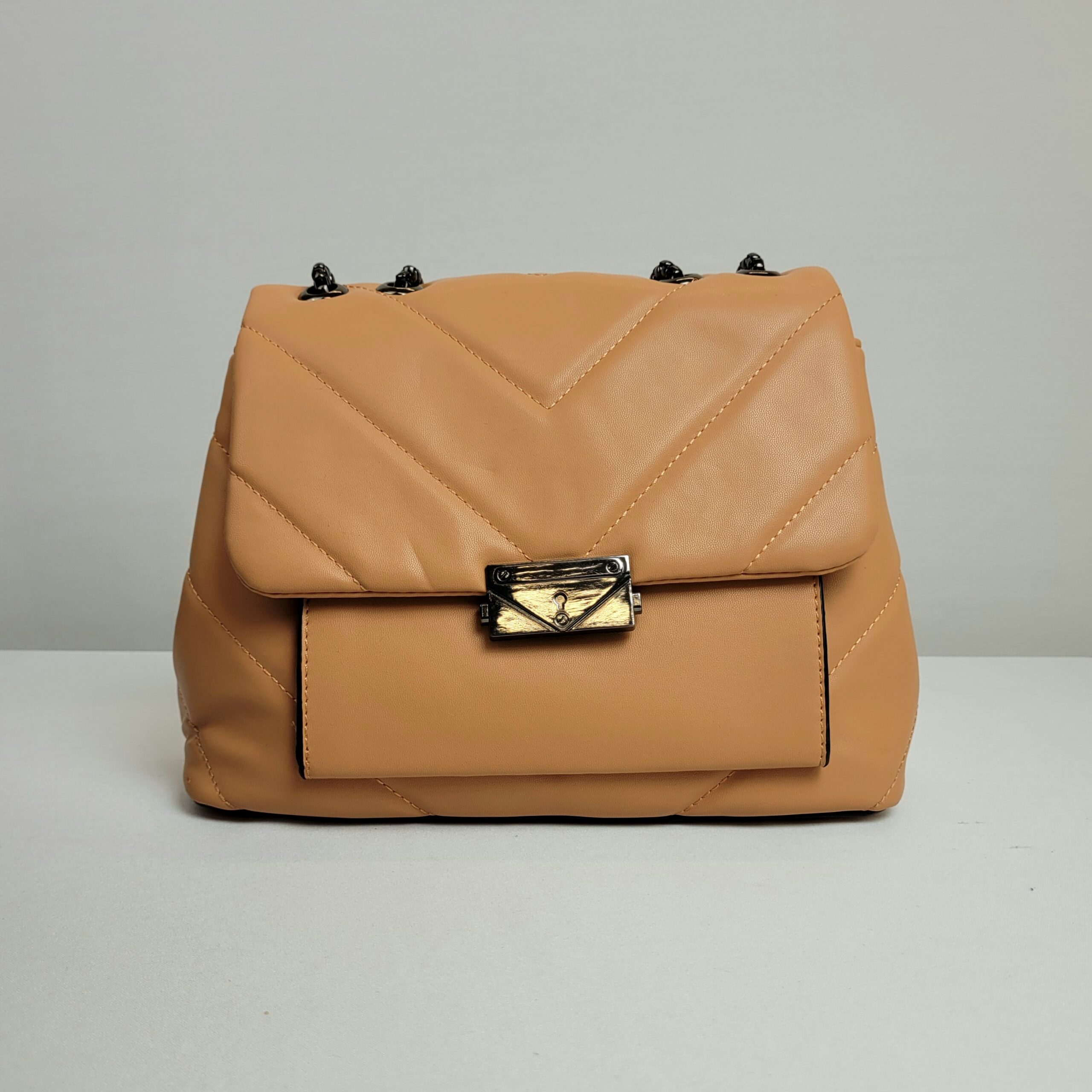 Uma bolsa que une funcionalidade e sofisticação. Suas alças com detalhes em correntes e seu fechamento dourado dão um charme a mais para peça. Além disso, possui um design moderno e elegante. Seu interior é dividido para garantir a melhor distribuição dos seus objetos. Essa bolsa é o toque final ideal para compor produções com charme e praticidade.Material externo: Nossas bolsas são confeccionadas no poliuretano, material sintético de altíssima qualidade, usado na fabricação de peças duráveis. Confira aqui nossa garantia.Material interno: Tecido.Medidas (comprimento x largura x altura): 26 x 16 x 9 cm