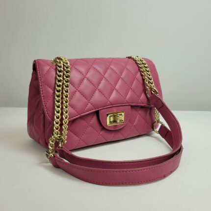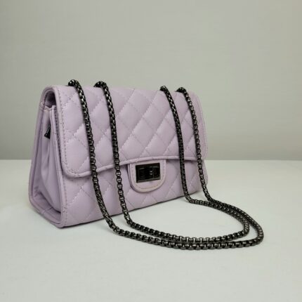 Uma bolsa pequena e delicada. Com sua alça que combina detalhes em correntes, ela traz elegância e modernidade, destacando-se de forma sutil e estilosa. O fechamento dourado delicado complementa o design com um toque de requinte. Compacta, prática e sofisticada. Possui um bolso na parte de trás e um espaço interno perfeito para carregar seus itens essenciais. A peça perfeita para adicionar um toque de cor suave ao dia a dia.