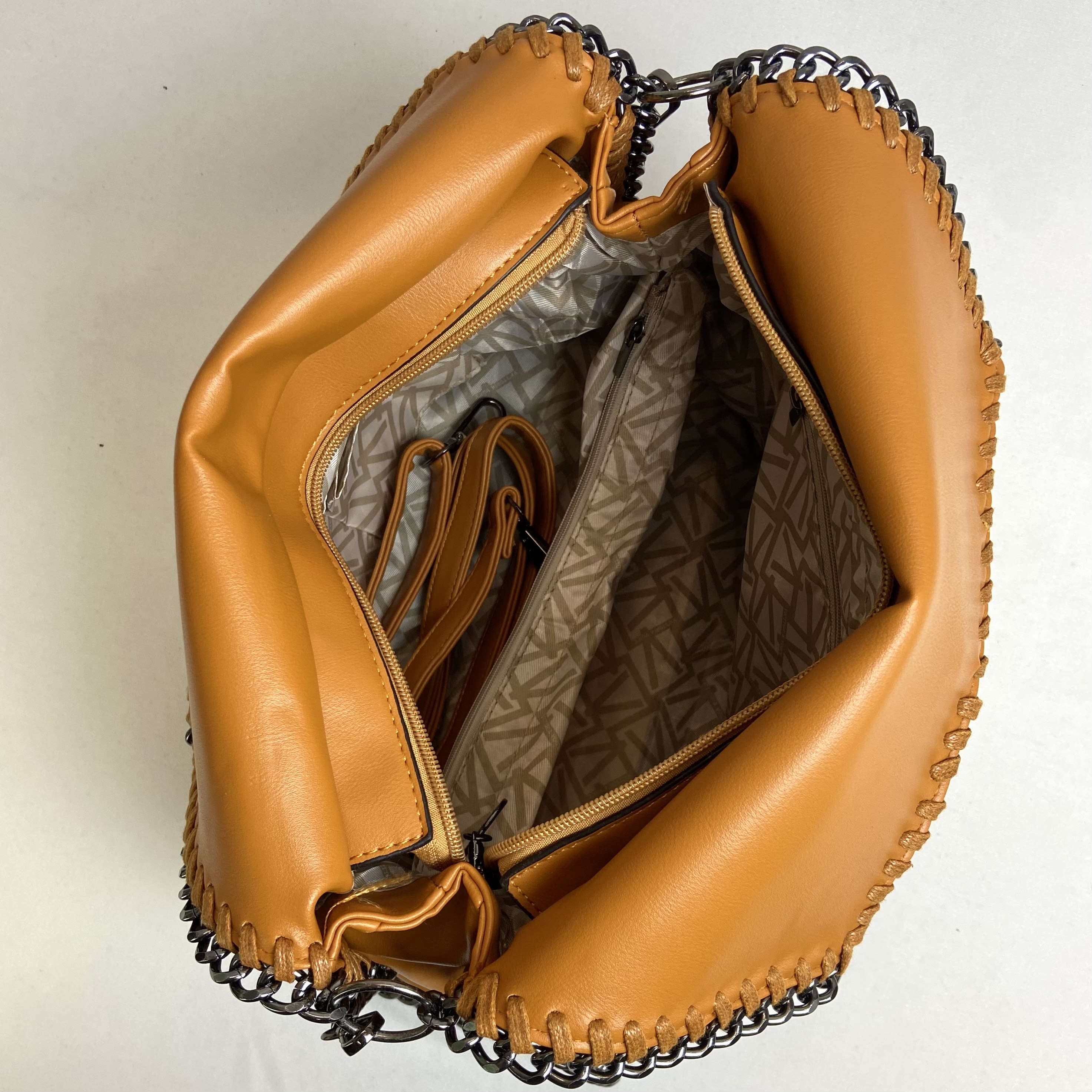 A bolsa perfeita para mulheres modernas e conscientes que buscam praticidade, estilo e sustentabilidade em um só produto. Com design icônico e elegante, é ideal para diversas ocasiões, do trabalho a um jantar especial. A bolsa se destaca por diversos aspectos, como seu design atemporal e marcante, a corrente de metal que a torna inconfundível e o compromisso da marca com o meio ambiente, utilizando materiais veganos de alta qualidade. Seu espaço interno é amplo e permite que você carregue tudo o que precisa com organização, e as alças confortáveis garantem que você carregue a bolsa com facilidade e segurança.