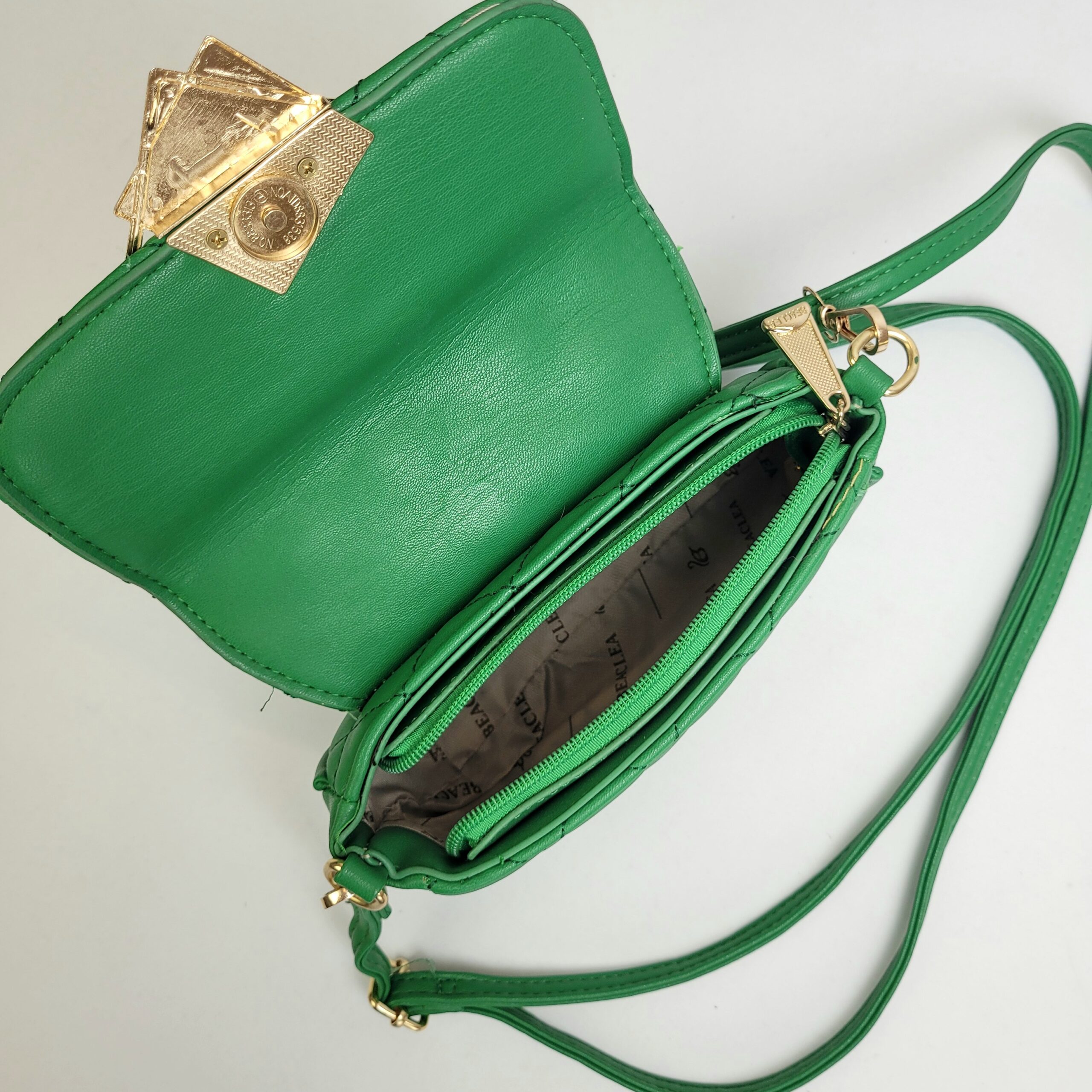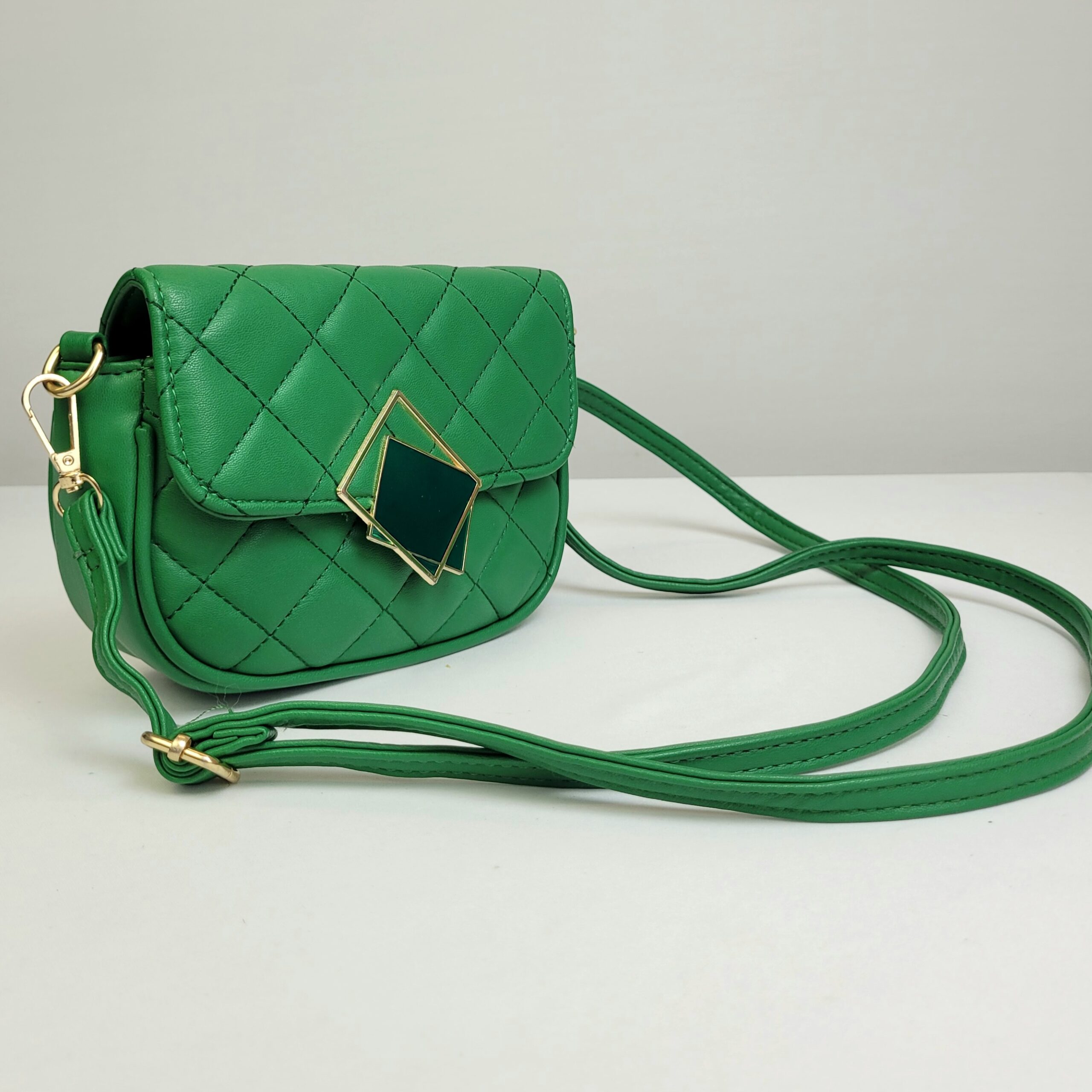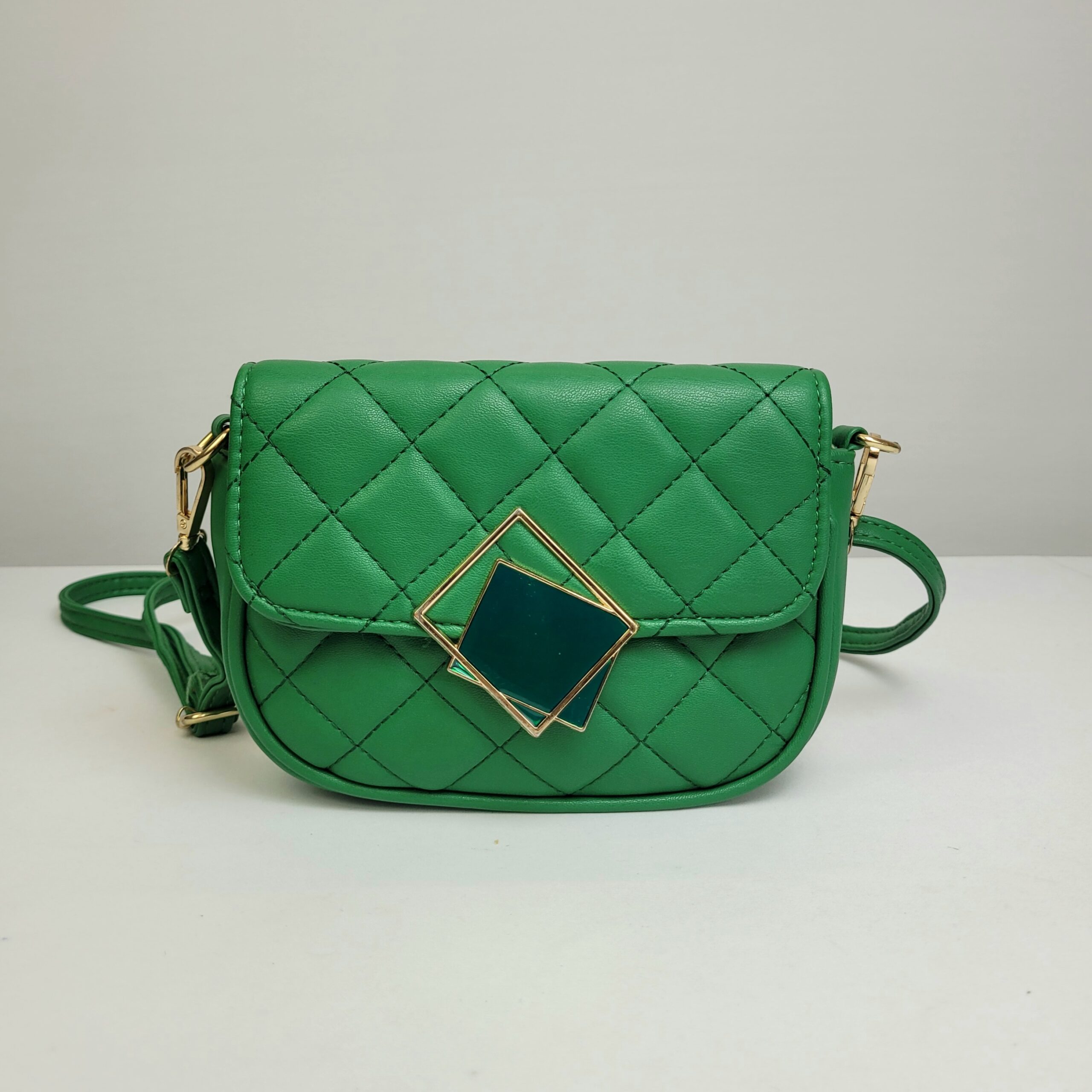 Uma bolsa pequena e sofisticada em um tom de verde encantador, com um design que traz um toque de feminilidade e modernidade para as suas composições. A alça ajustável e removível permite diversas formas de uso, adaptando-se ao estilo e à ocasião. O detalhe especial fica por conta do fechamento, adornado com um pingente elegante em verde e dourado. Compacta, luxuosa e funcional!