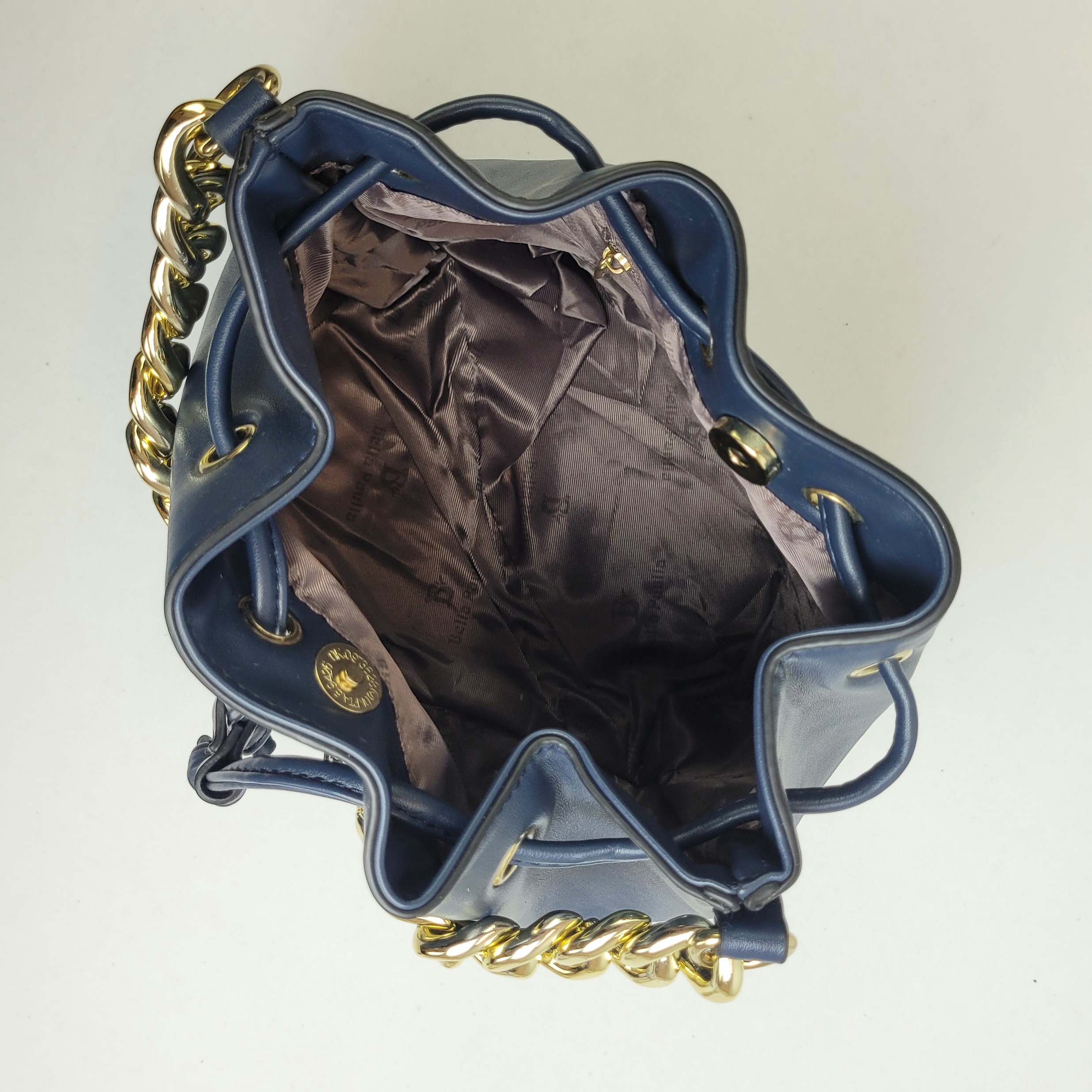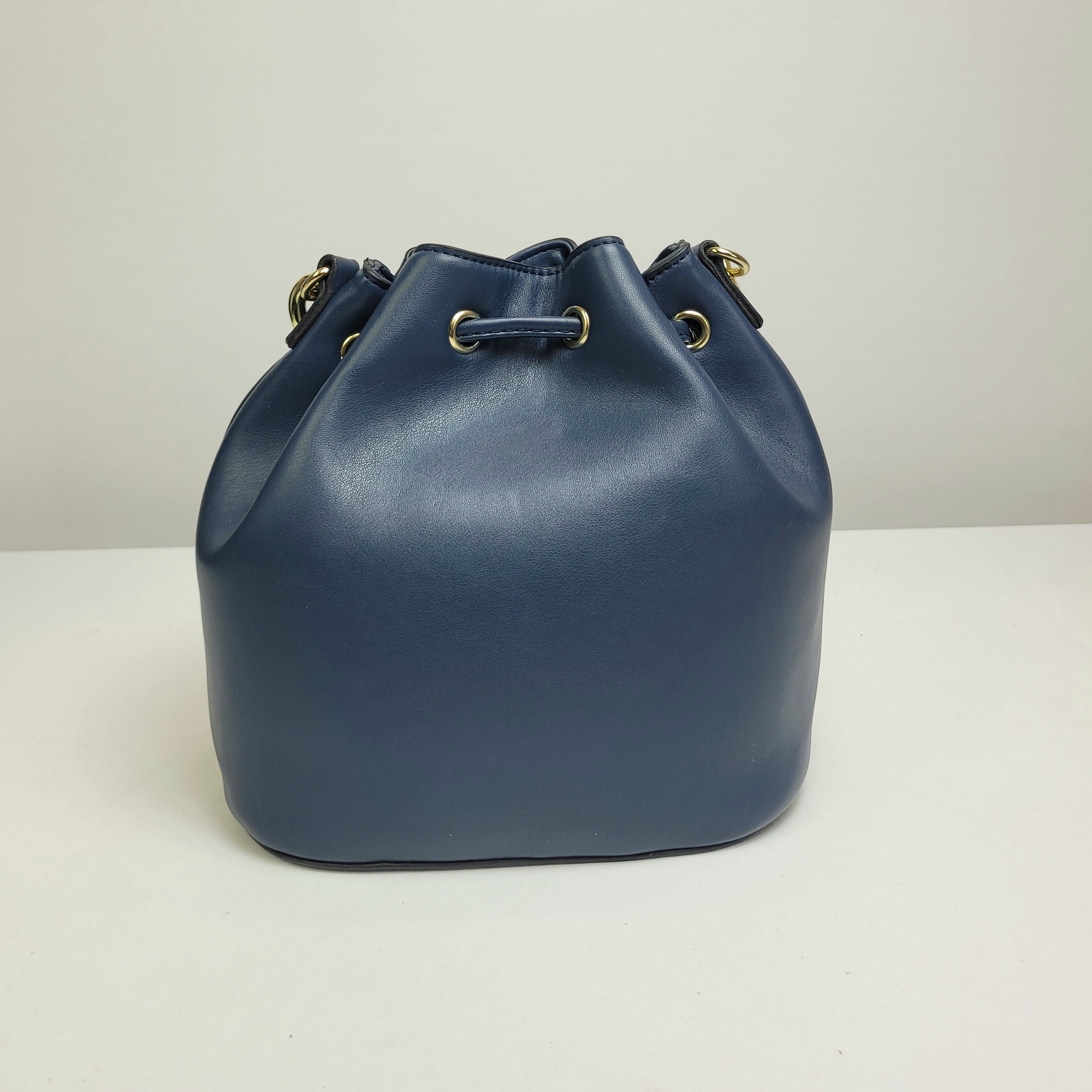 Uma bolsa Bucket média em um tom azul elegante, moderna e sofisticada. O detalhe em corrente dourada se destaca no design, adicionando um brilho sutil e um toque luxuoso ao acessório. Com alça regulável, essa bolsa oferece versatilidade e conforto, adaptando-se a melhor forma de uso para você. Compacta e, ao mesmo tempo, espaçosa.