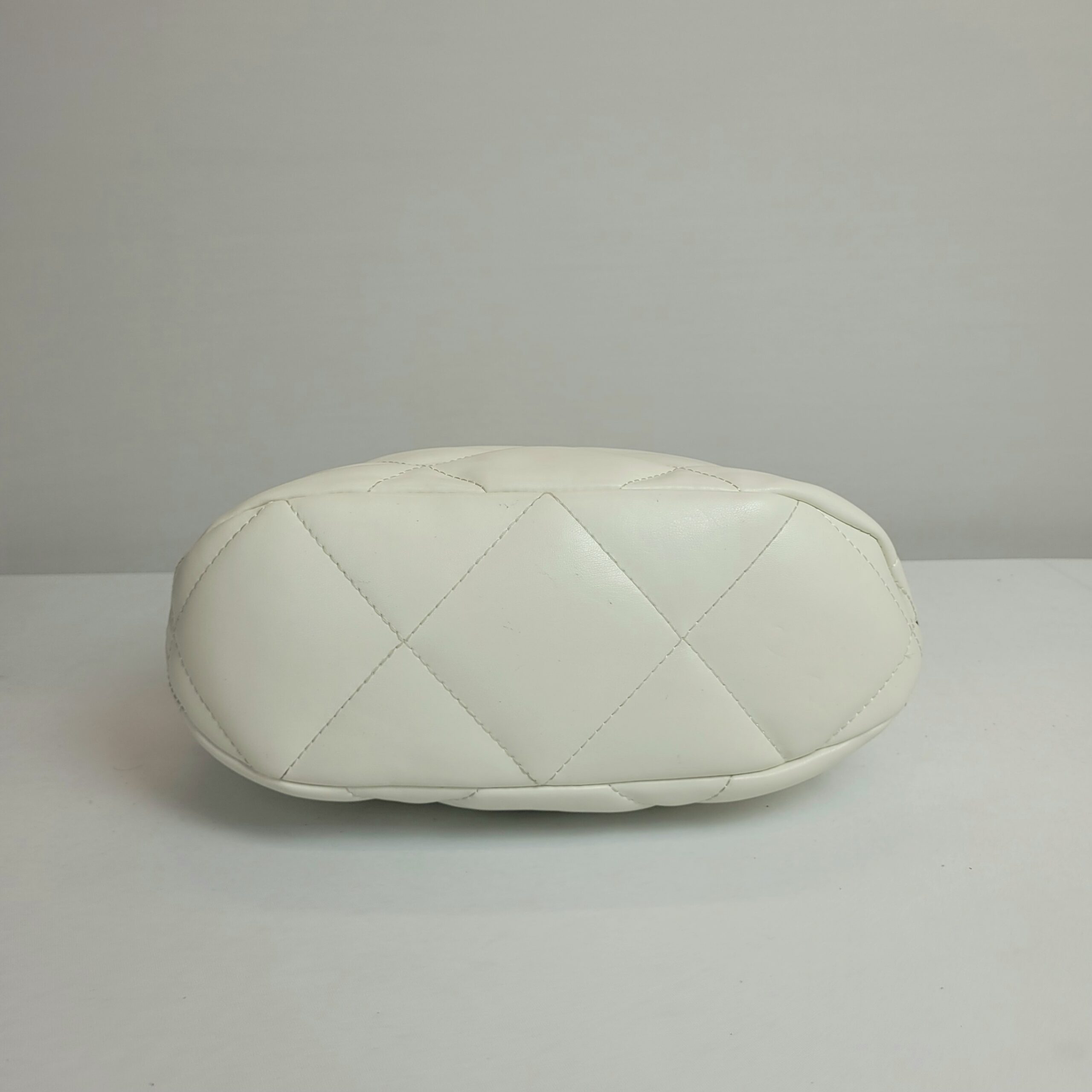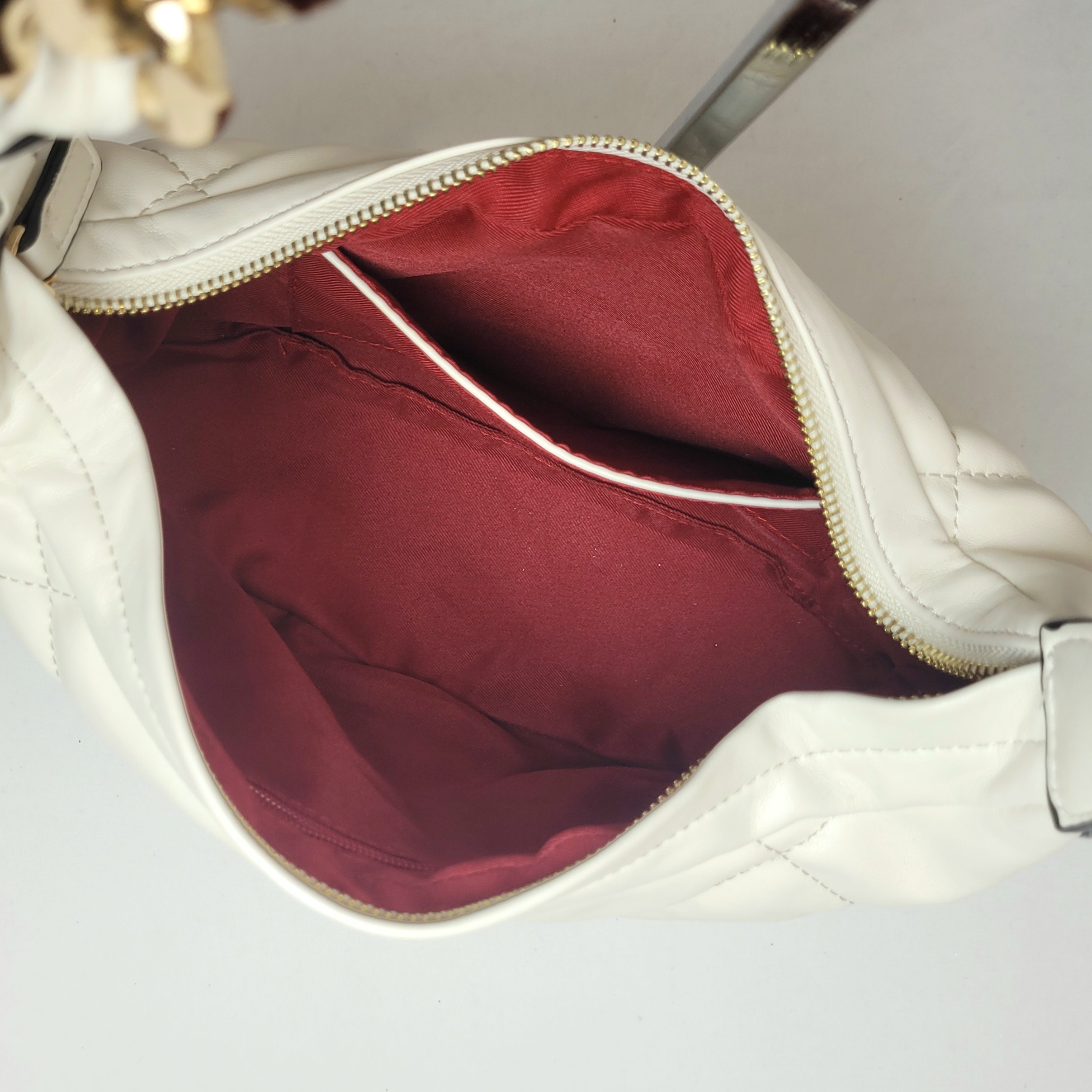 Uma bolsa off-white com um design elegante e sofisticado, perfeita para diferentes ocasiões. Conta com uma alça charmosa com detalhes em correntes douradas, que agrega modernidade ao visual. Possui um ótimo espaço interno para organizar seus itens essenciais e fechamento em zíper, garantindo praticidade e segurança.
