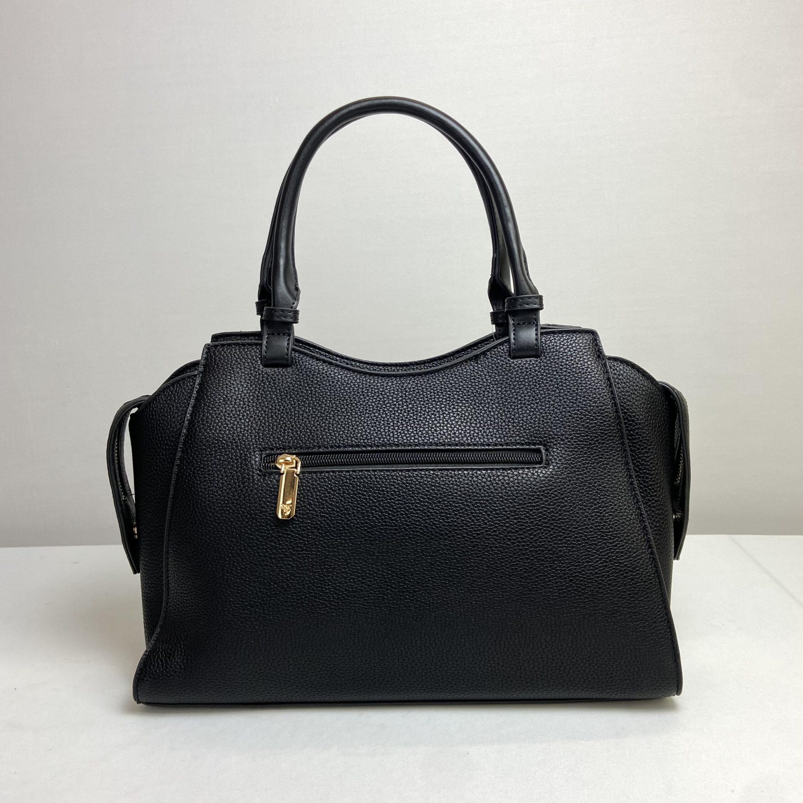 Bolsa preta elegante com design moderno, perfeita para quem busca sofisticação e praticidade. Conta com alças confortáveis para tornar o uso agradável no dia a dia. Além disso, possui amplo espaço interno para melhor organização e um fechamento lateral em zíper, garantindo segurança e um toque diferenciado ao design.Material externo: Confeccionada no poliuretano, material sintético de altíssima qualidade, usado na fabricação de peças duráveis.Material interno: Tecido.Medidas (comprimento x largura x altura): 29 x 12 x 25 cm