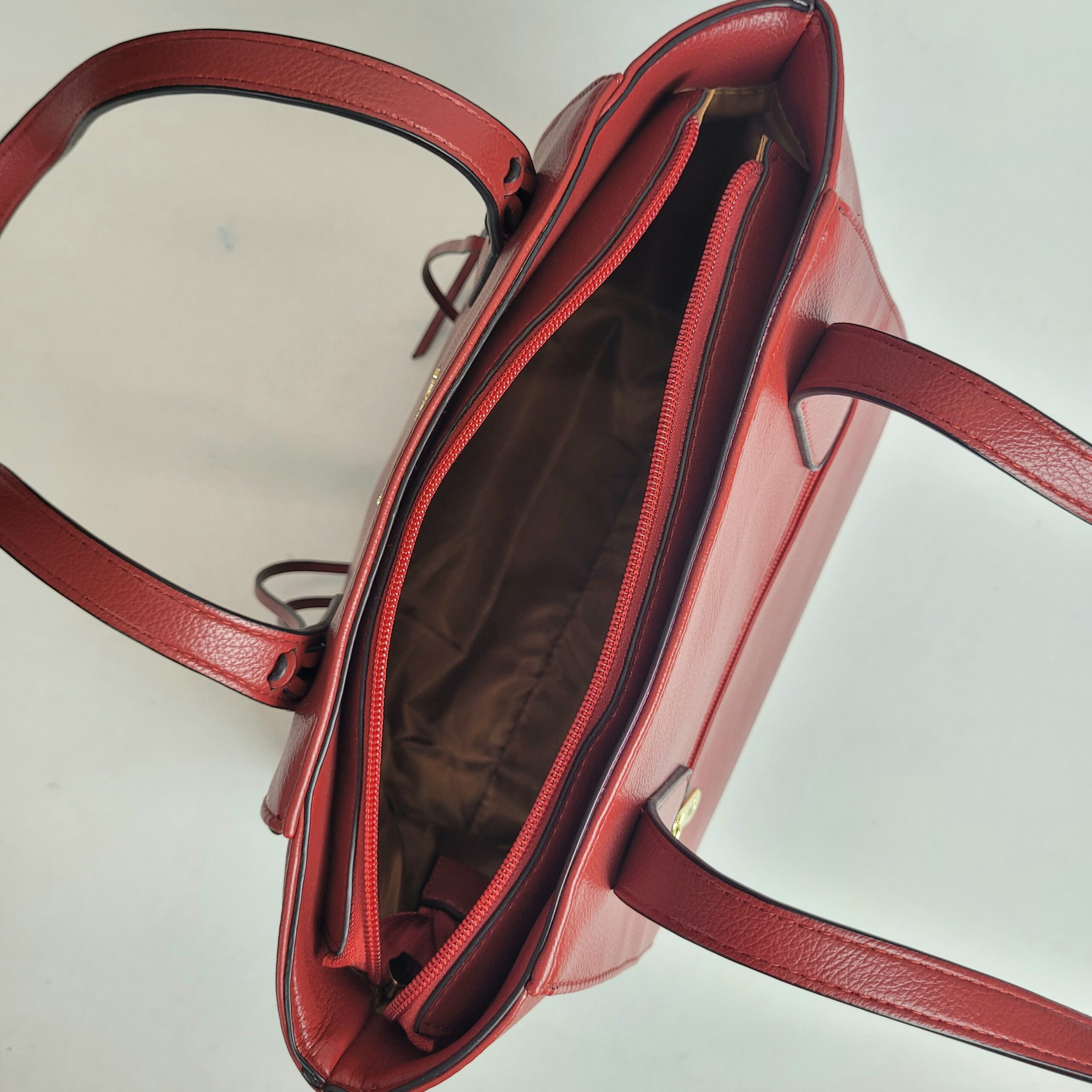 Bolsa espaçosa e funcional, ideal para quem busca praticidade, mas não quer abrir mão do estilo. Em um vibrante tom de vermelho, conta com fechamento em zíper para maior segurança, alça confortável para uso prolongado e um bolso discreto na parte de trás, ideal para itens de fácil acesso. Uma escolha sofisticada e versátil para o dia a dia.