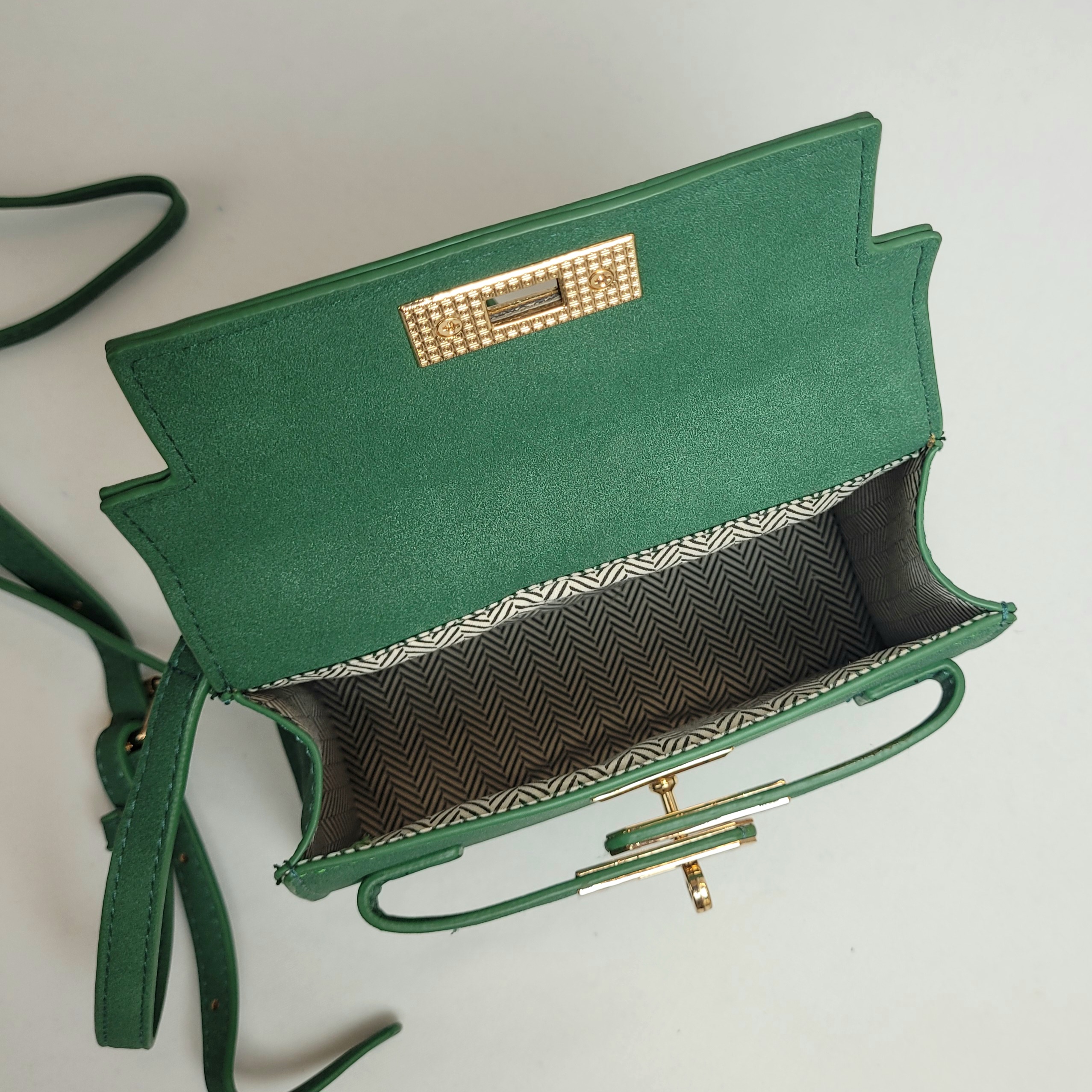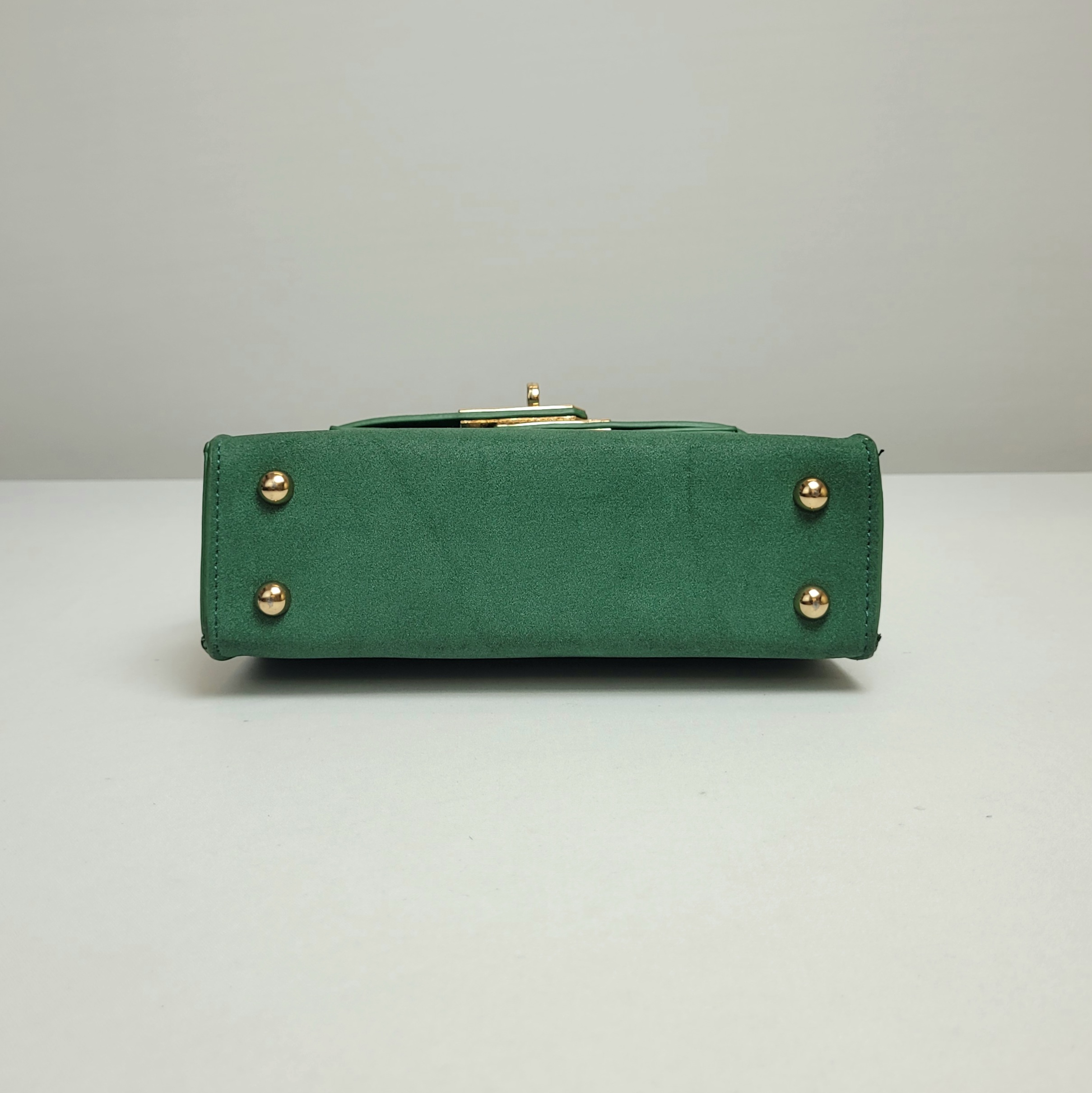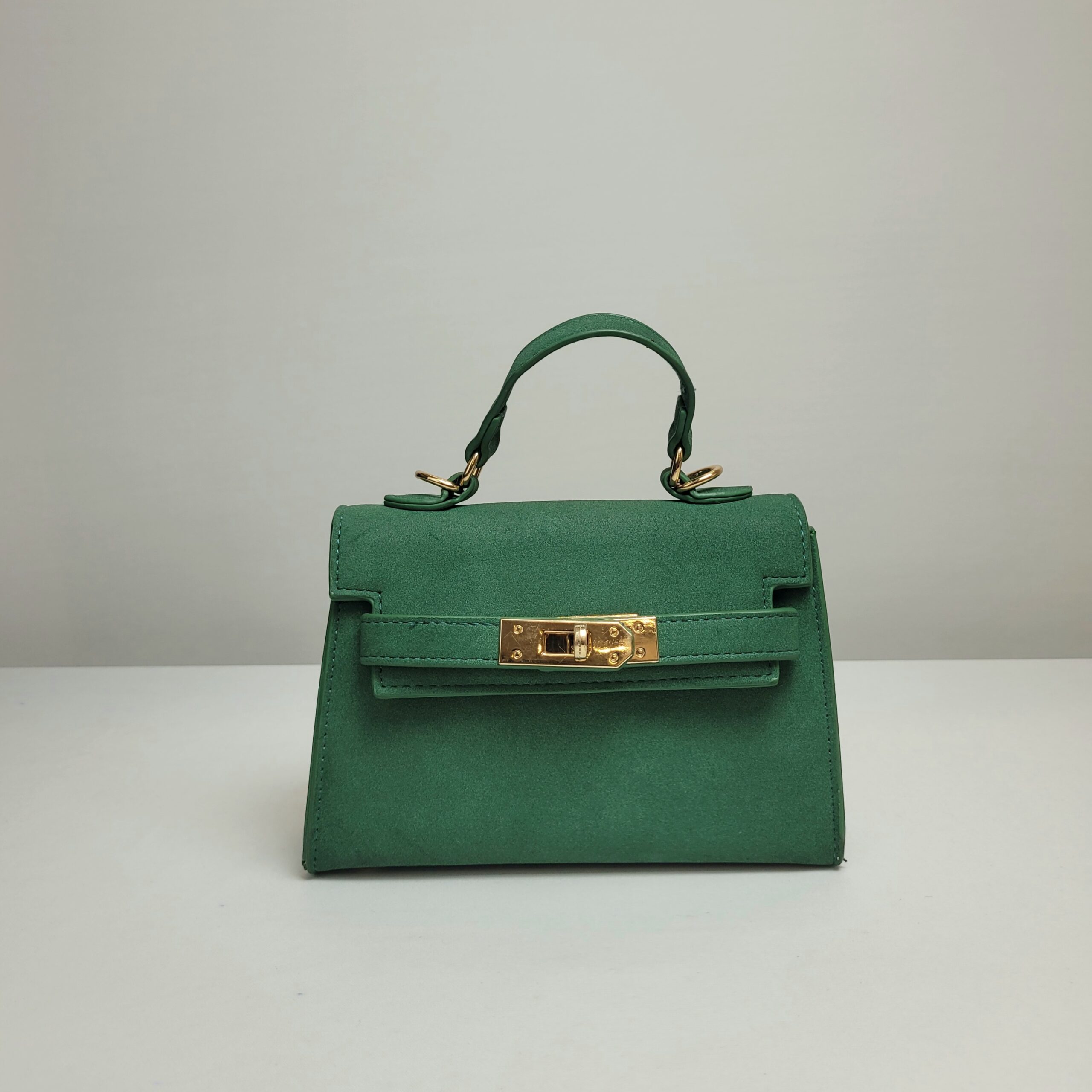Uma bolsa compacta e sofisticada em camurça verde. Com uma alça de mão que confere um charme clássico e uma alça ajustável para uso no ombro ou transversalmente, essa peça oferece liberdade para diferentes ocasiões. Seu design compacto é ideal para carregar o essencial com estilo.