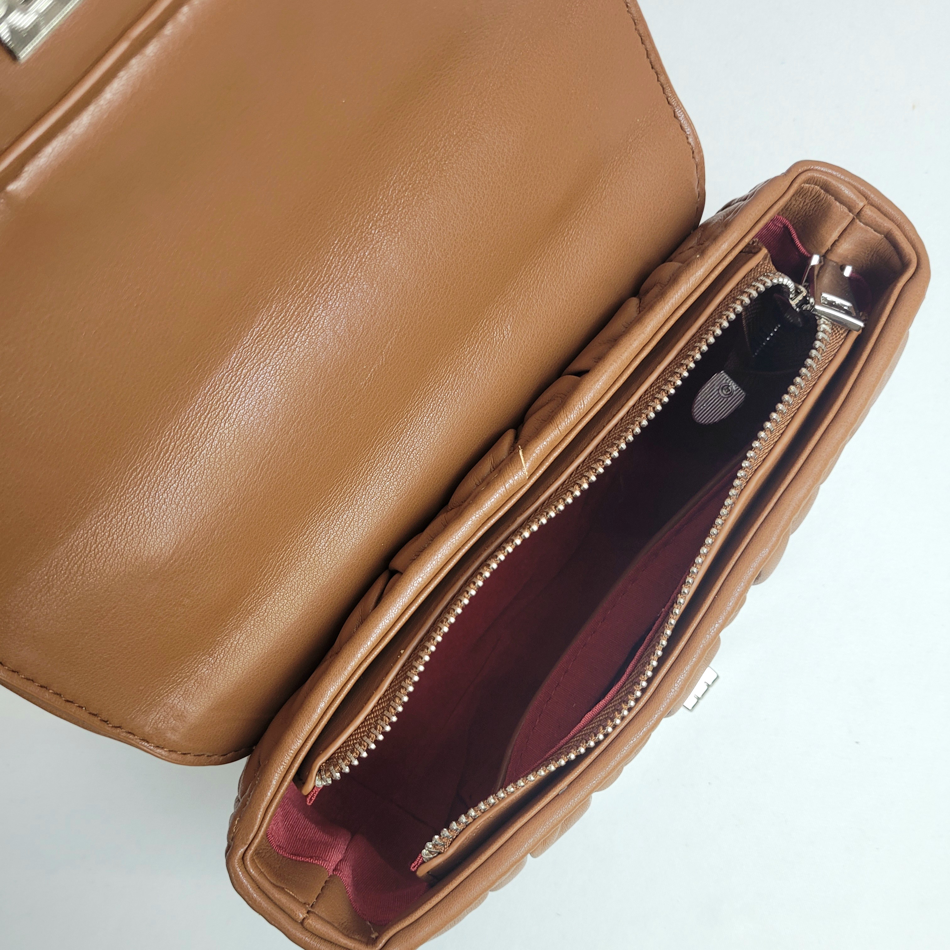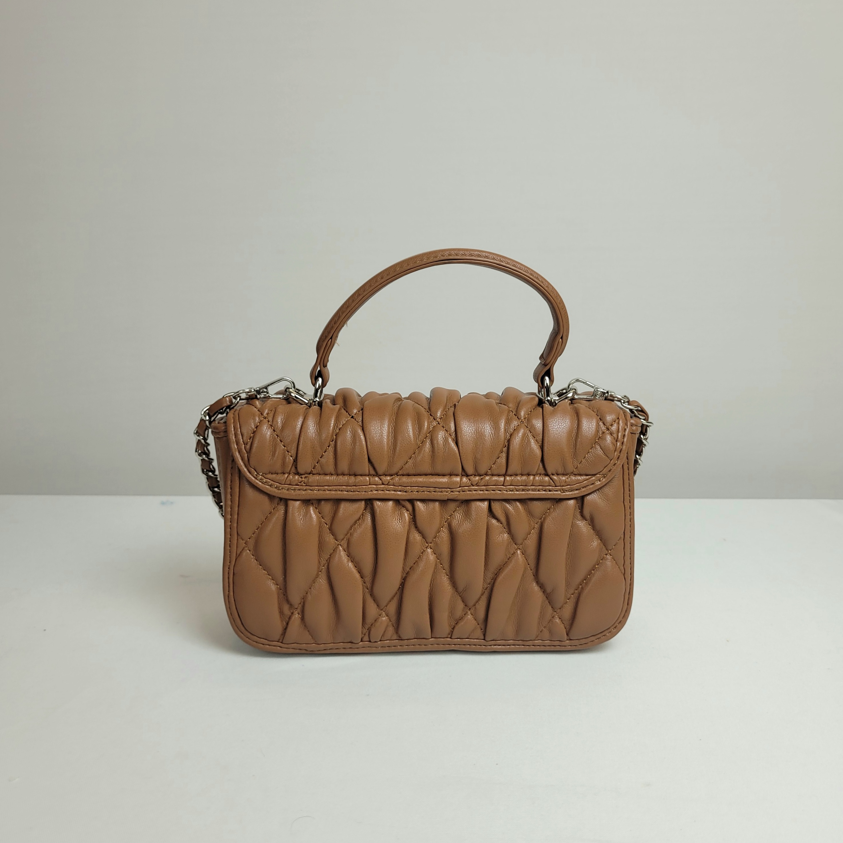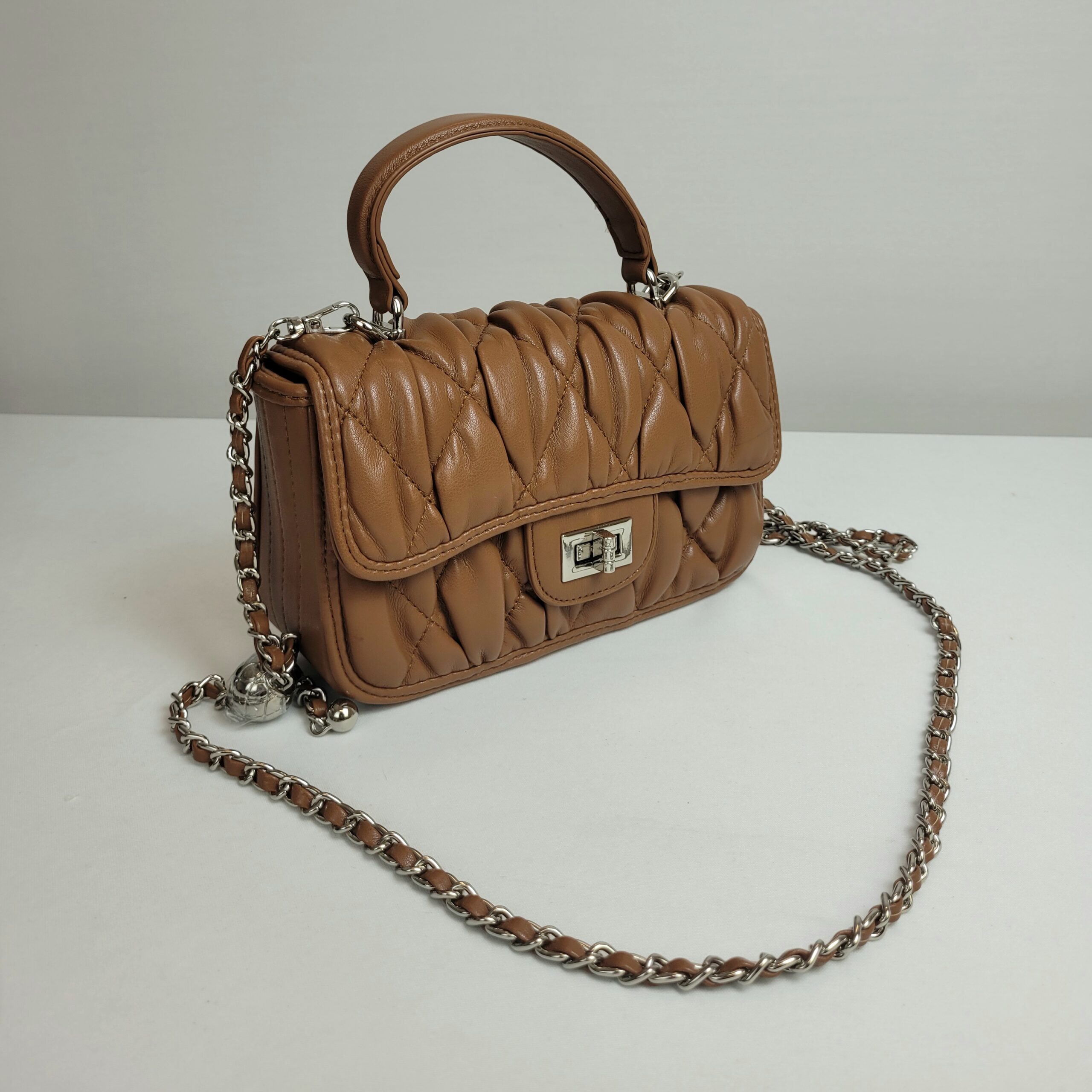 Bolsa em um elegante tom de marrom, perfeita para compor looks sofisticados. Possui uma alça de mão e também uma alça ajustável em corrente prata, proporcionando mais versatilidade no seu uso. Seu fechamento conta com um delicado adorno prateado, agregando um toque refinado ao design. Além disso, seu espaço interno é bem estruturado e conta com fechamento em zíper para maior segurança e praticidade.