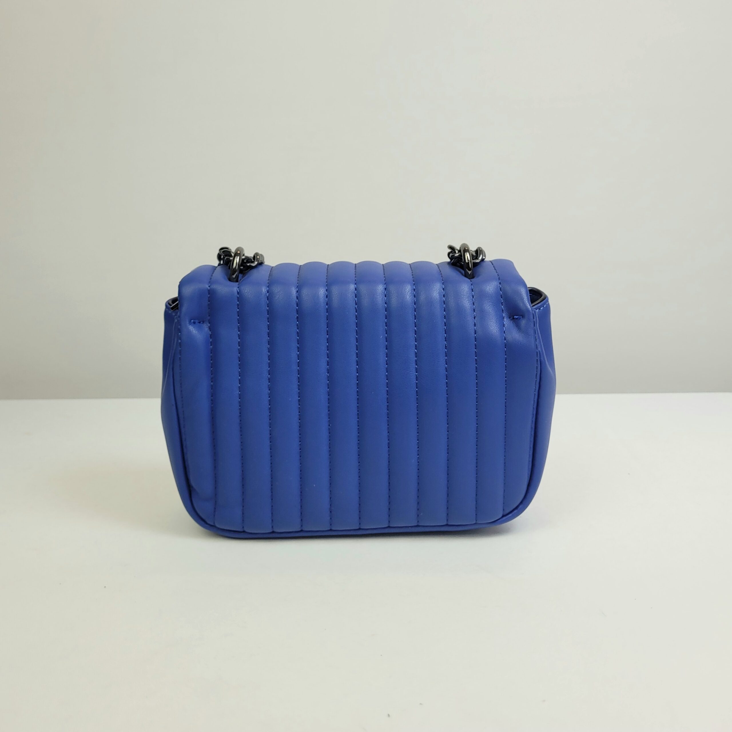 Uma bolsa compacta e elegante na cor azul, perfeita para ocasiões em que menos é mais. Seu design sofisticado traz como complemento uma alça em corrente escura o que adiciona um toque moderno e refinado ao seu visual. Embora compacta, é ideal para carregar os itens essenciais com estilo e praticidade.