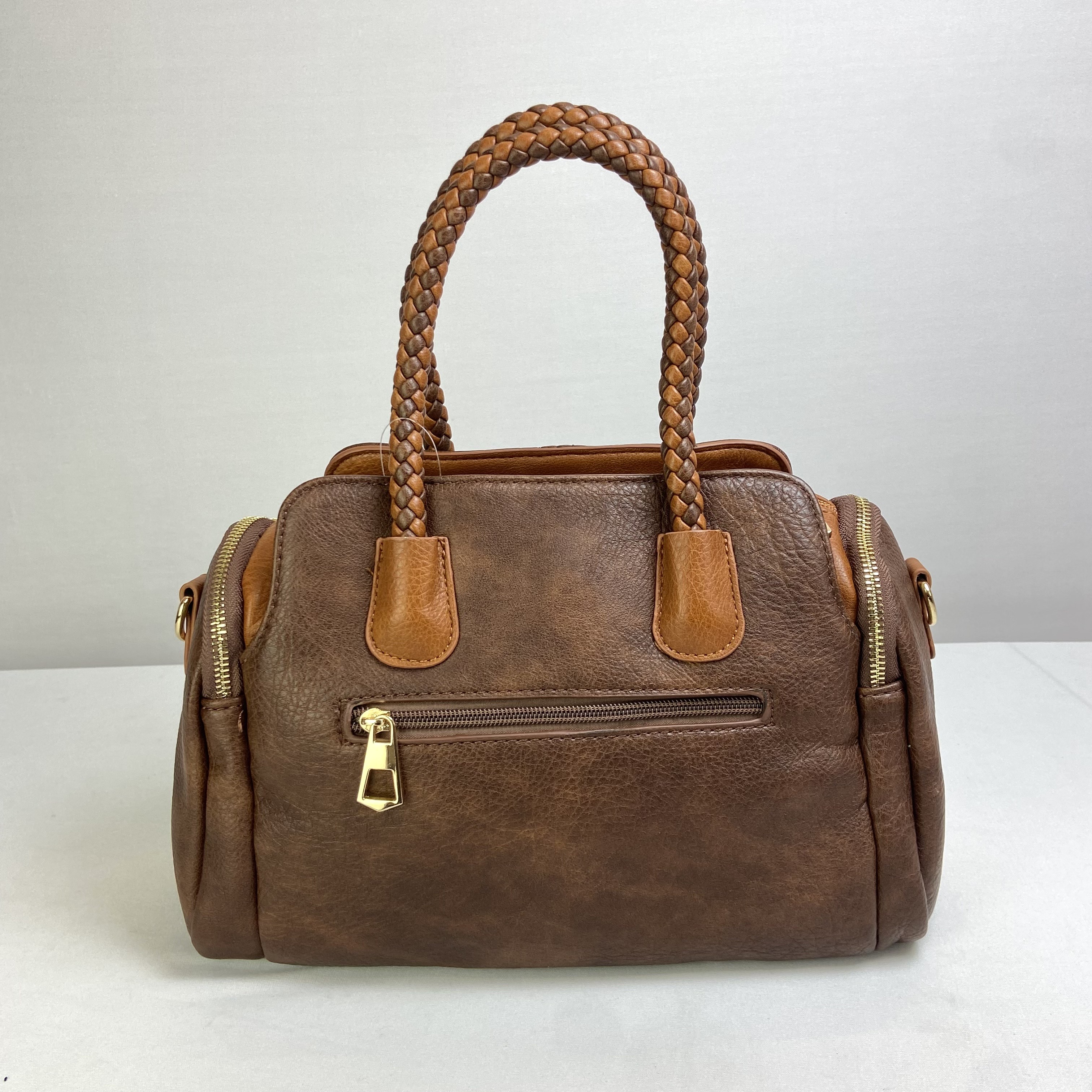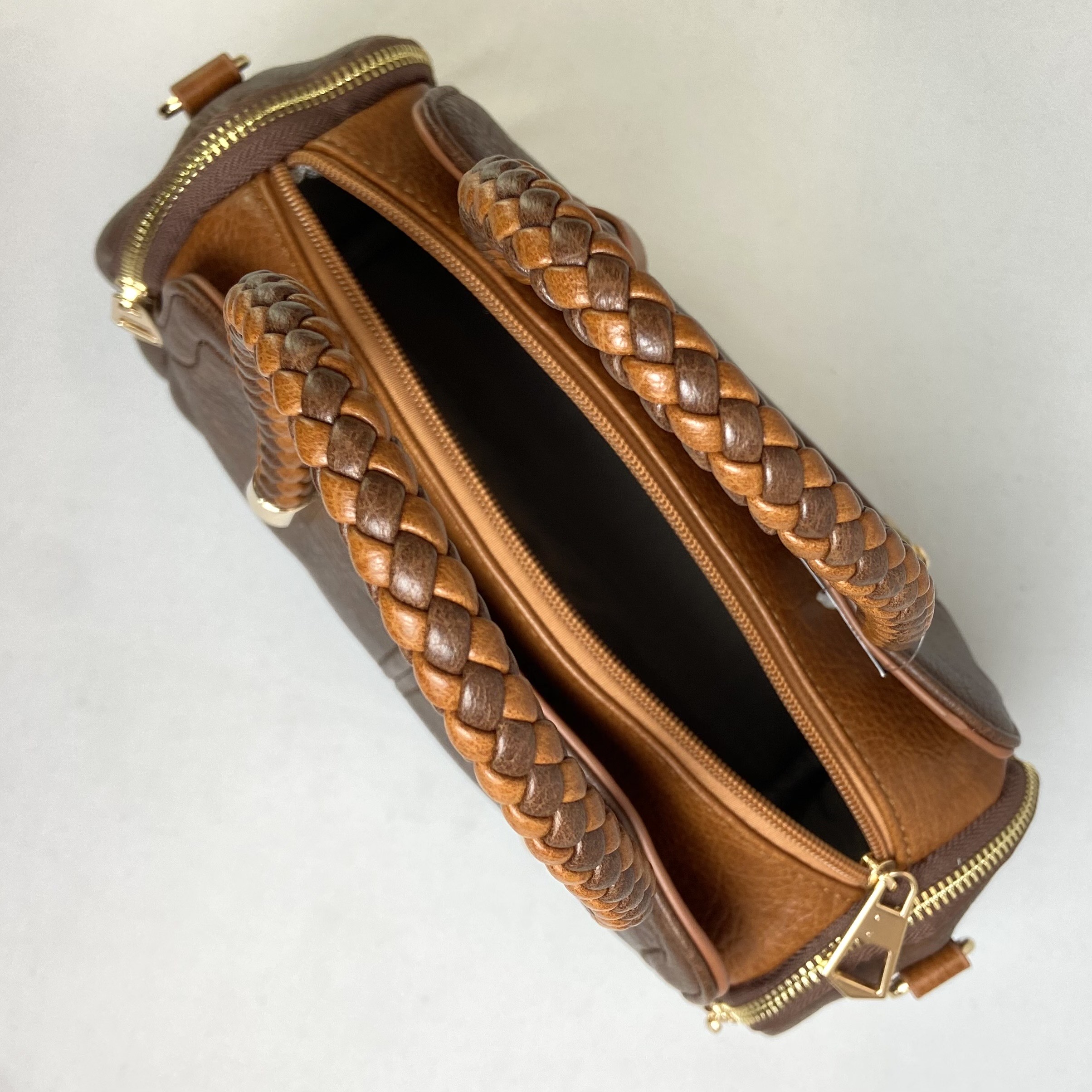 Bolsa marrom com detalhes em caramelo: Elegância e praticidade para o seu dia a dia! Apresentamos a bolsa ideal para mulheres que valorizam praticidade e estilo. Com design clássico e detalhes modernos em caramelo, ela é perfeita para diversas ocasiões. As alças trançadas em caramelo proporcionam conforto ao ombro, e a alça ajustável oferece versatilidade no uso. O amplo espaço interno, organiza seus pertences de forma prática. Confeccionada com materiais de alta qualidade, a bolsa é resistente e durável, com detalhes em dourado que adicionam sofisticação.