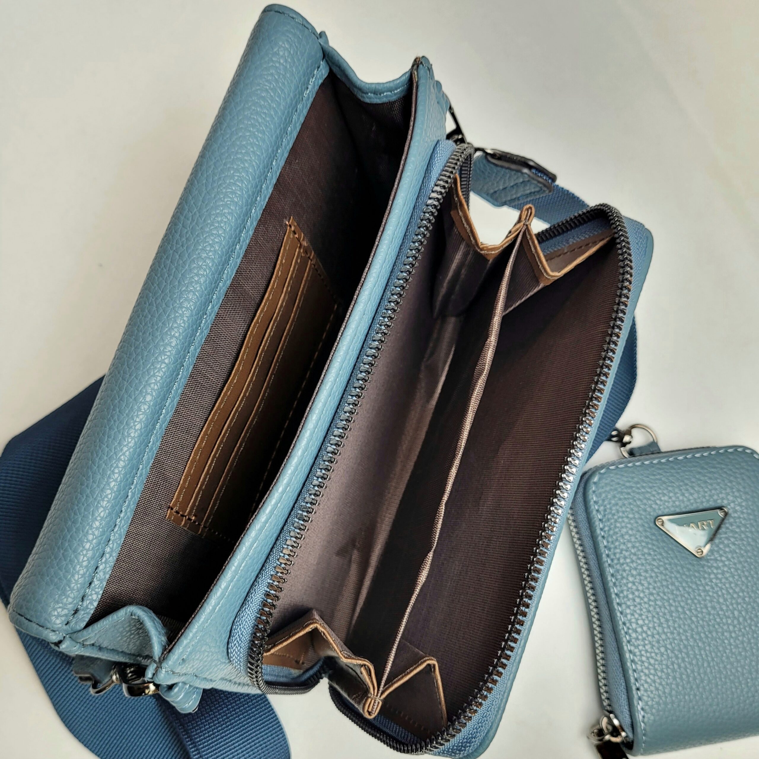 Material externo: Nossas bolsas são confeccionadas no poliuretano, material sintético de altíssima qualidade, usado na fabricação de peças duráveis.