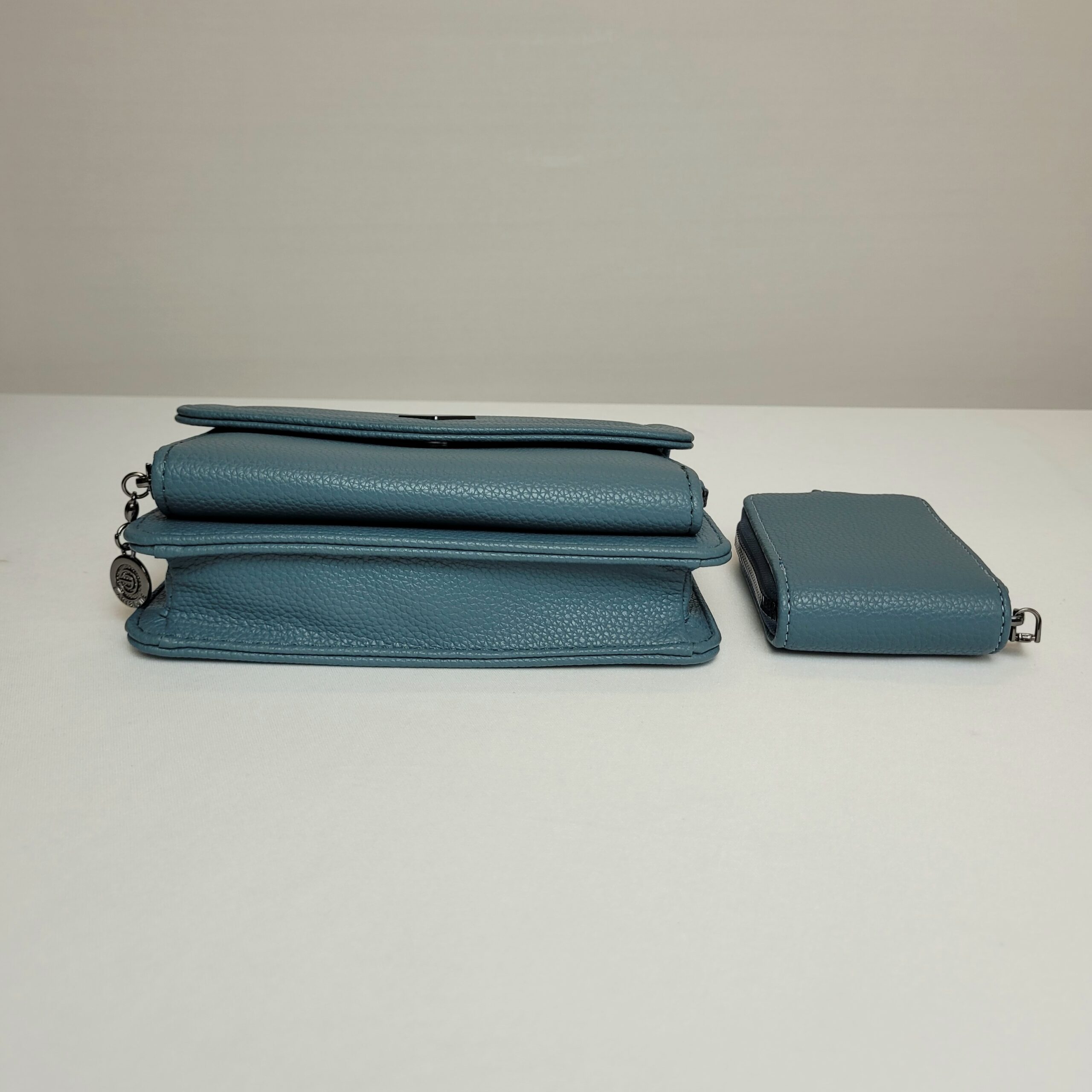 Bolsa azul moderna e sofisticada com um adorno de cadeado dourado na parte frontal, que acentua ainda mais a elegância do design. Embora compacta, surpreende com um bom espaço interno, ideal para organizar seus pertences. Versátil, conta com alça de mão e alça removível e ajustável, permitindo diferentes formas de uso. Além disso, possui um bolso externo com fechamento em zíper, garantindo praticidade e segurança para itens de acesso rápido.Material externo: Nossas bolsas são confeccionadas no poliuretano, material sintético de altíssima qualidade, usado na fabricação de peças duráveis. Confira aqui nossa garantia.Material interno: Tecido.Medidas (comprimento x largura x altura): 24 x 9 x 24 cm