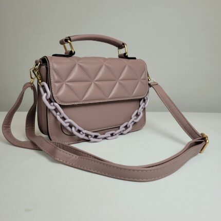 Uma bolsa para quem valoriza estilo e funcionalidade. Possui alça de mão para um uso mais clássico e uma alça regulável e removível, permitindo ajuste para uso transversal ou no ombro, garantindo conforto durante o dia todo. A corrente lilás removível também traz um charme a mais para a peça. Essa bolsa é perfeita para ocasiões casuais e eventos mais formais, comportando essencialmente o necessário.Material externo: Nossas bolsas são confeccionadas no poliuretano, material sintético de altíssima qualidade, usado na fabricação de peças duráveis. Confira aqui nossa garantia.Material interno: Tecido.Medidas (comprimento x largura x altura): 23 x 16 x 7 cm
