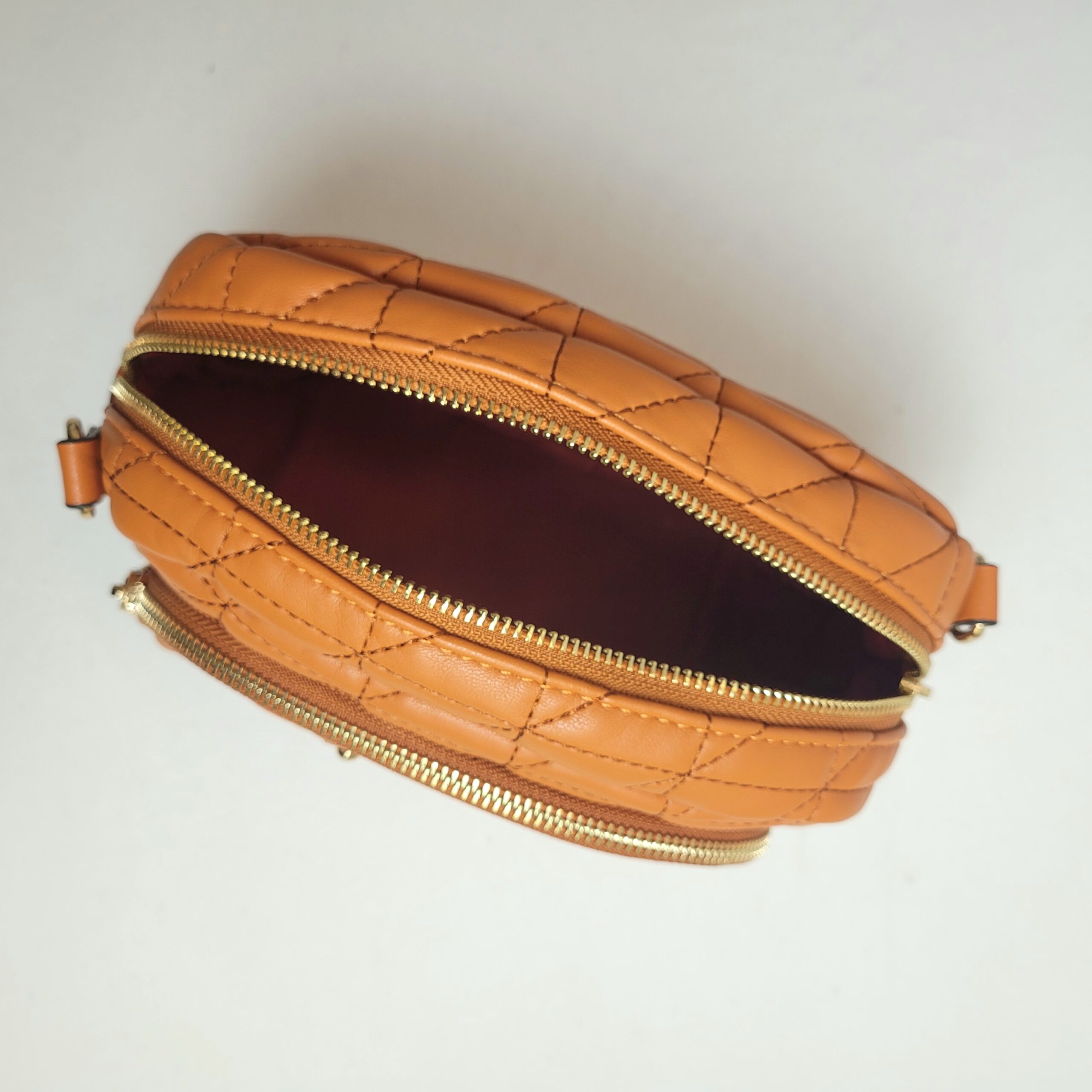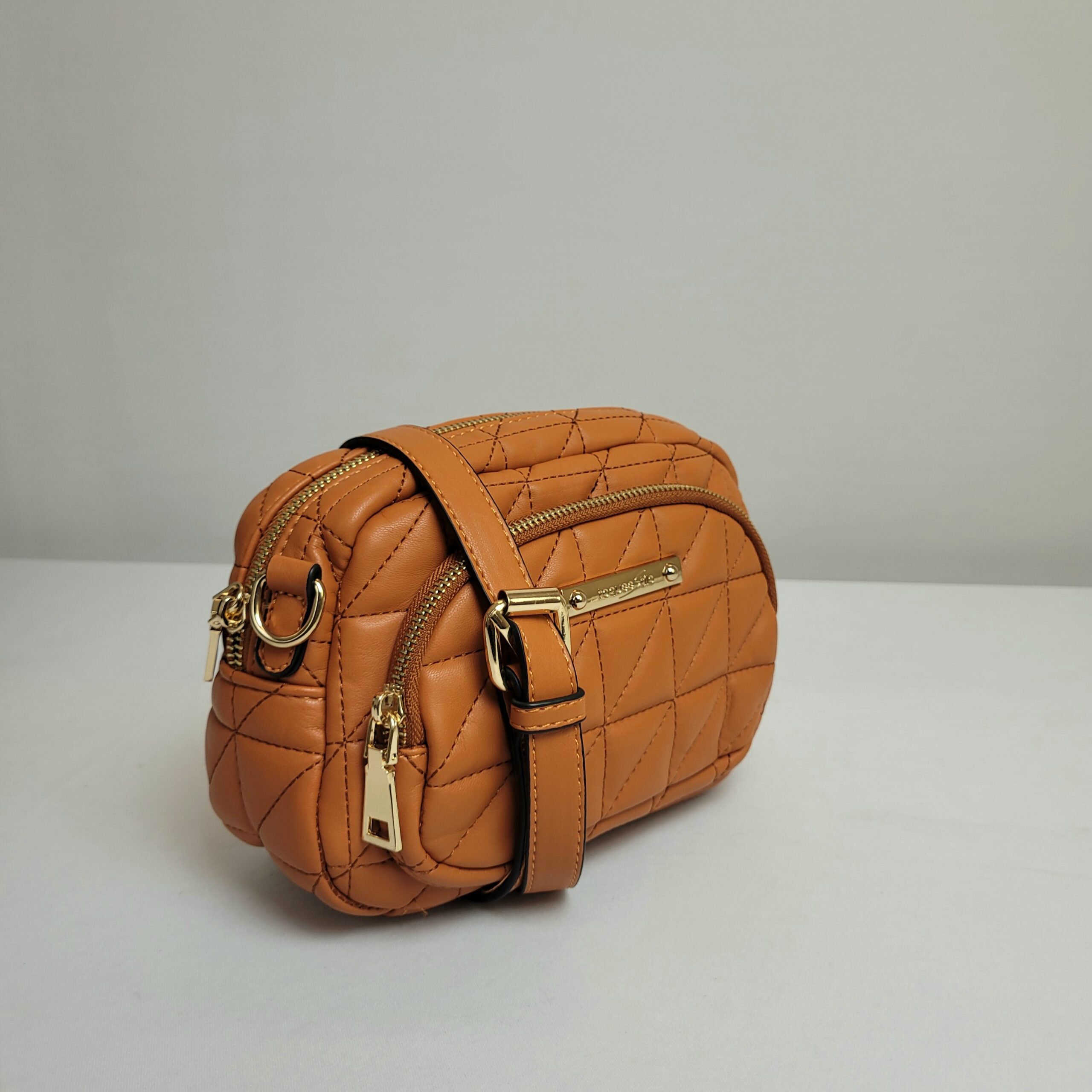 Bolsa com design arredondado e sofisticado, perfeita para quem busca praticidade com elegância. Possui duas repartições com fechamento em zíper para melhor organização. Conta também com uma alça removível e ajustável para diferentes formas de uso. Apesar de compacta, oferece um bom espaço interno para armazenar seus itens principais com estilo.