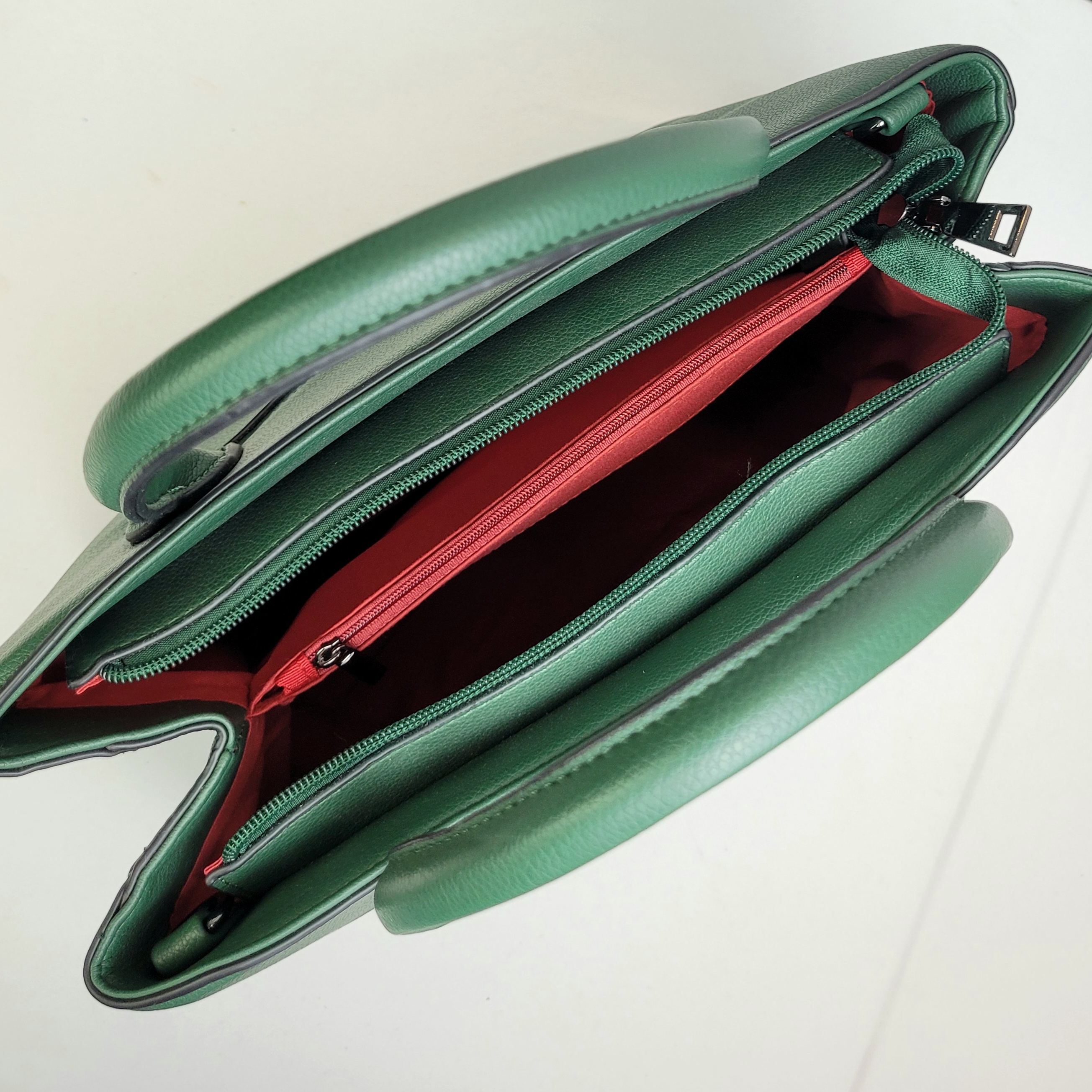 Uma bolsa grande e funcional em um tom de verde moderno. Com duas opções de alça, uma regulável para uso no ombro ou transversalmente e outra para carregar de forma mais clássica, ela pode ser usada em diferentes situações. O espaço interno bem organizado conta com divisões estratégicas, facilitando o armazenamento e o acesso aos itens essenciais. Ela combina amplo espaço com um design elegante.