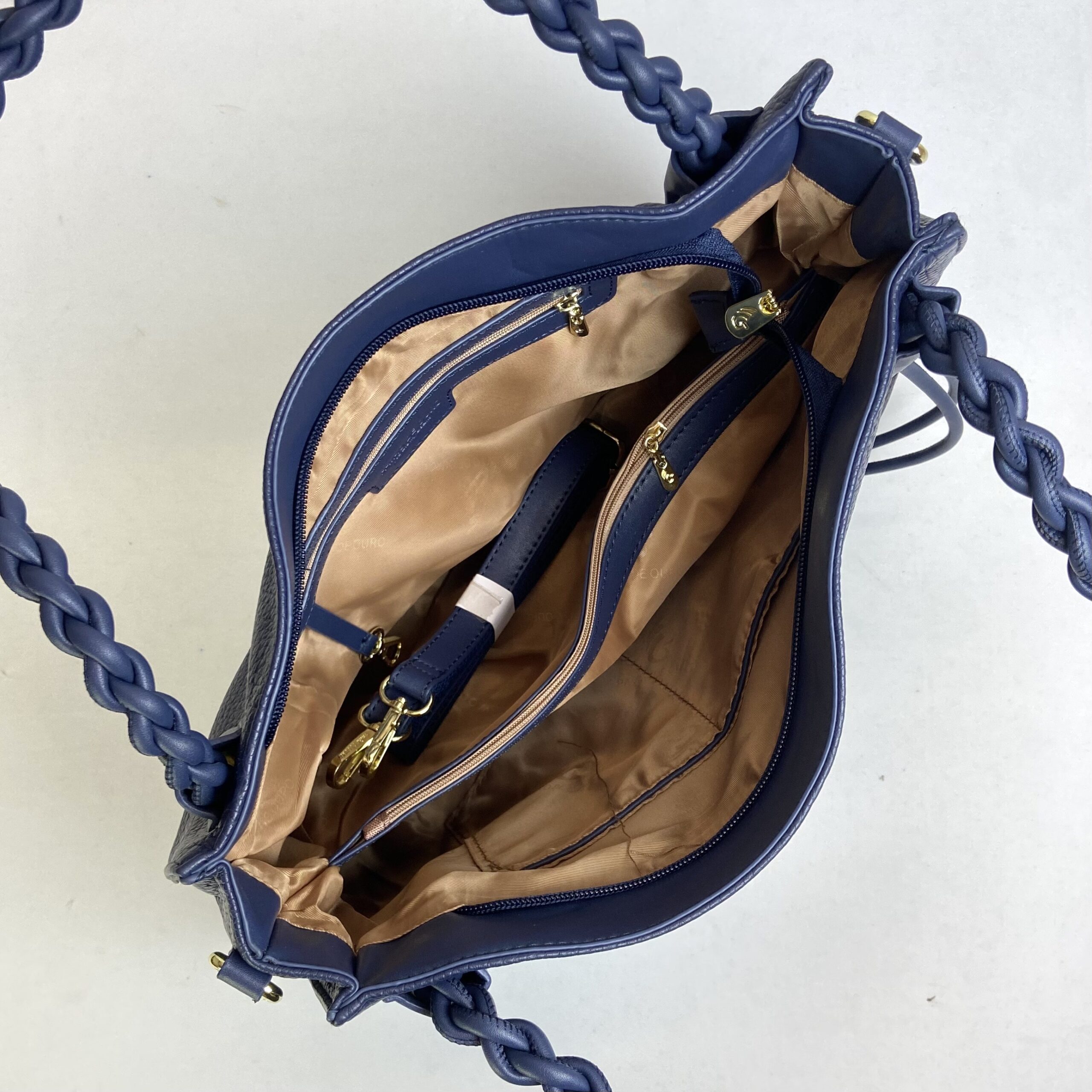 Bolsa em um tom elegante de azul, espaçosa e funcional. Conta com divisões internas que facilitam a organização dos seus pertences. Possui uma alça confortável com design trançado, que confere um toque moderno, além de outra alça ajustável e removível, garantindo versatilidade no uso. Para maior praticidade, conta também com um bolso externo na parte de trás, ideal para o acesso rápido a itens essenciais.Material externo: Nossas bolsas são confeccionadas no poliuretano, material sintético de altíssima qualidade, usado na fabricação de peças duráveis. Confira aqui nossa garantia.Material interno: Tecido.Medidas (comprimento x largura x altura): 38 x 13 x 31 cm