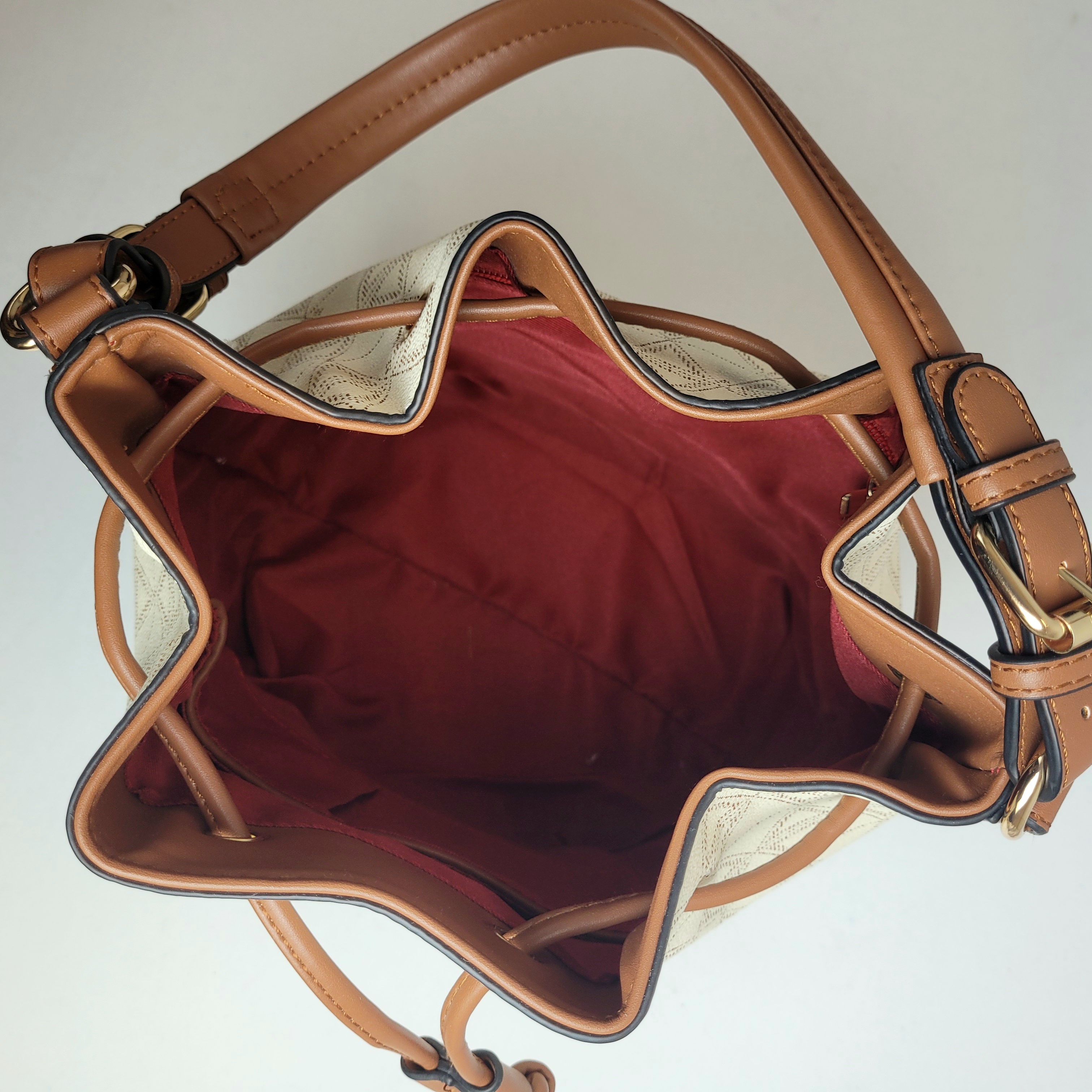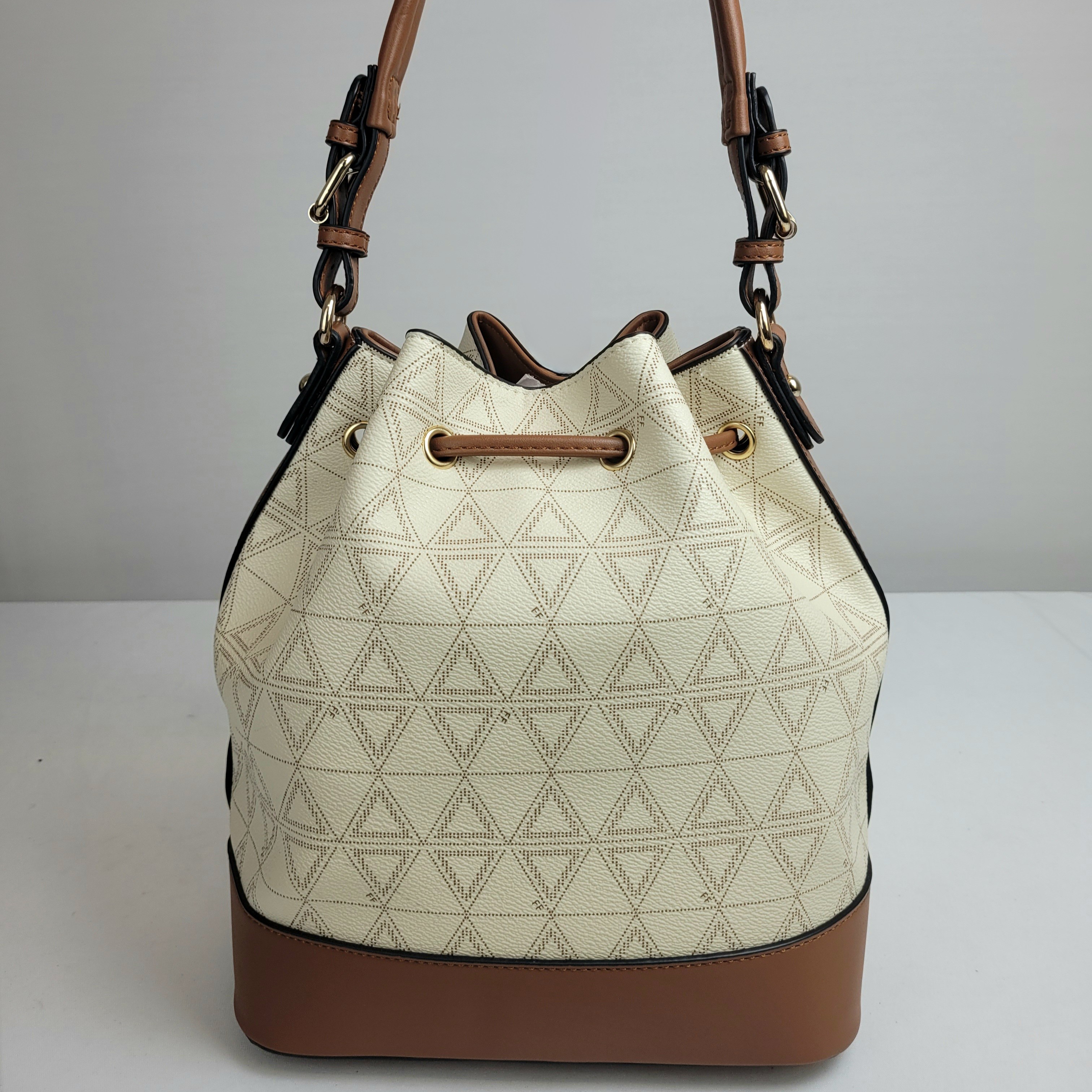 Uma bolsa bucket espaçosa, perfeita para quem quer unir estilo e praticidade. Apresenta uma estampa elegante com sofisticados detalhes em marrom, adicionando um toque de charme ao design. Além disso, conta com uma alça confortável para uso prolongado. Possui ainda um amplo espaço interno, ideal para organizar seus itens essenciais com facilidade e elegância.