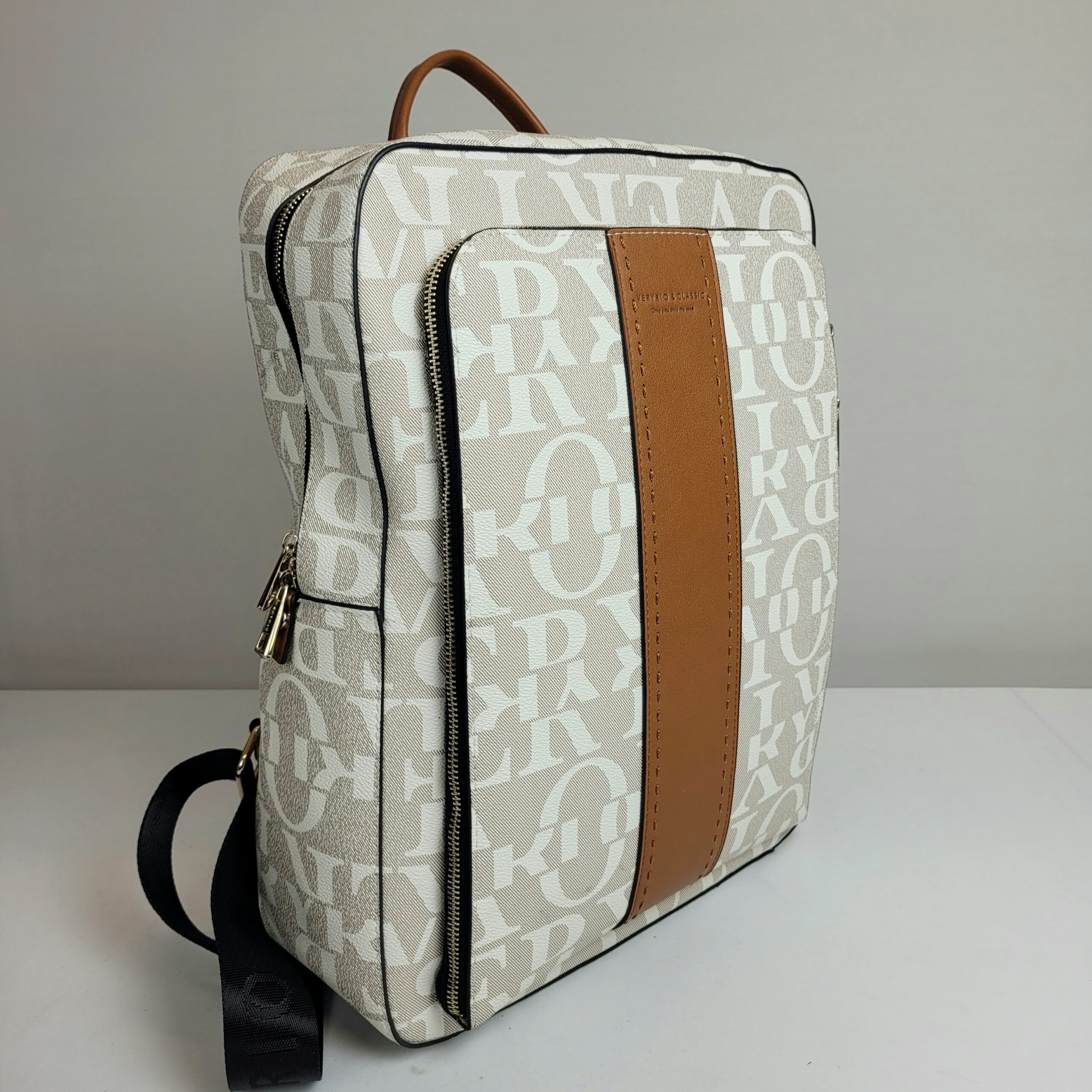 Mochila preta confeccionada em nylon impermeável, combinando design moderno com elegantes detalhes em marrom. Versátil, oferece três opções de alça, de mão, para as costas e uma transversal removível, dessa maneira atende diversas ocasiões. Seu amplo espaço interno com fechamento em zíper, mantêm os itens organizados. Para garantir mais organização, dispõe de dois bolsos dianteiros e um bolso traseiro, todos com fechamento em zíper, além de dois bolsos laterais sem fechamento. Uma escolha prática e estilosa para o dia a dia.